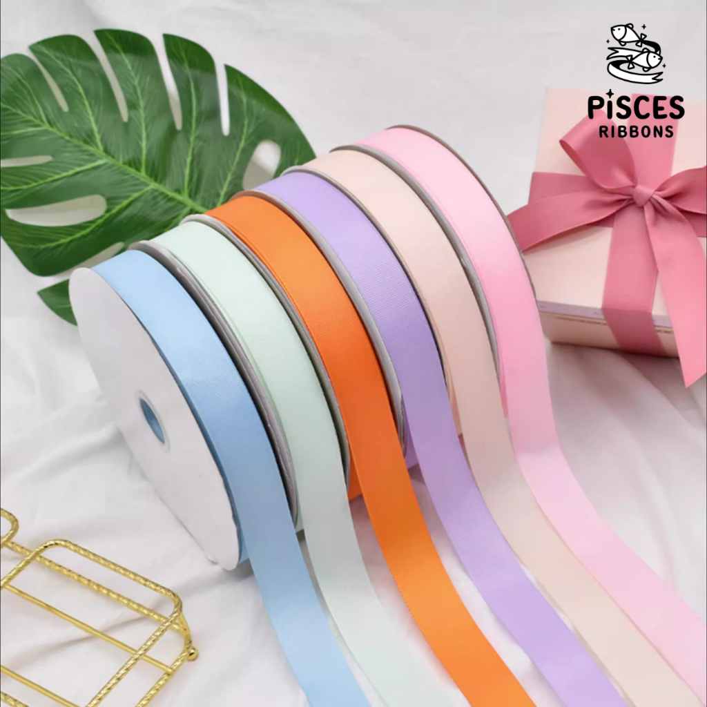 ริบบิ้นผ้ากรอสเกรนสีพื้นซึ่งเป็นผ้าสังเคราะห์ที่เนื้อแน่นและค่อนข้างอยู่ทรงดี เหมาะกับการใช้งานตกแต่งต่าง ๆ