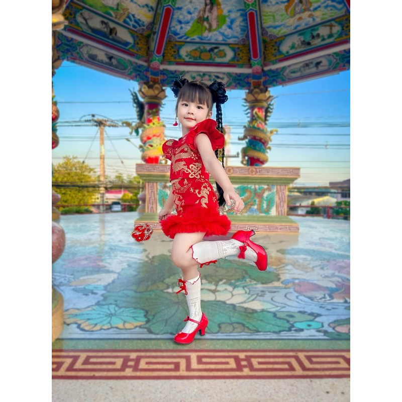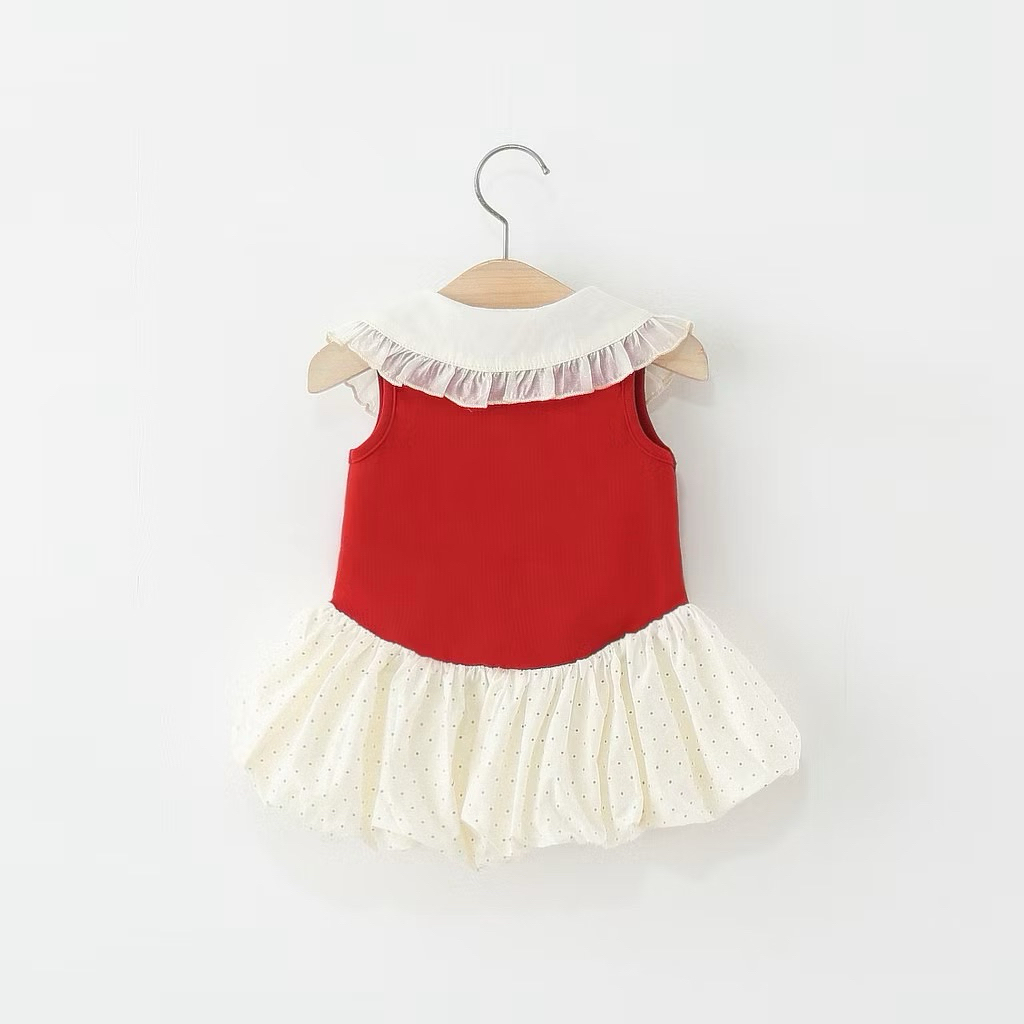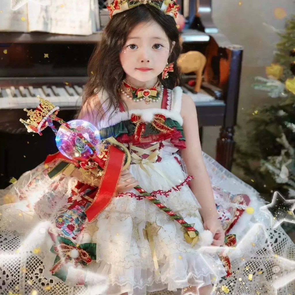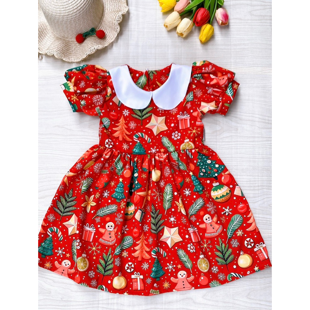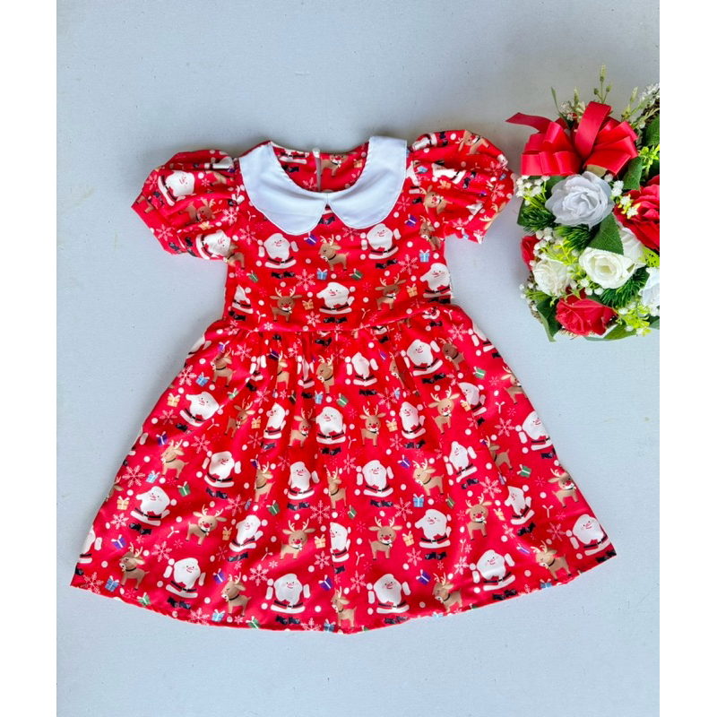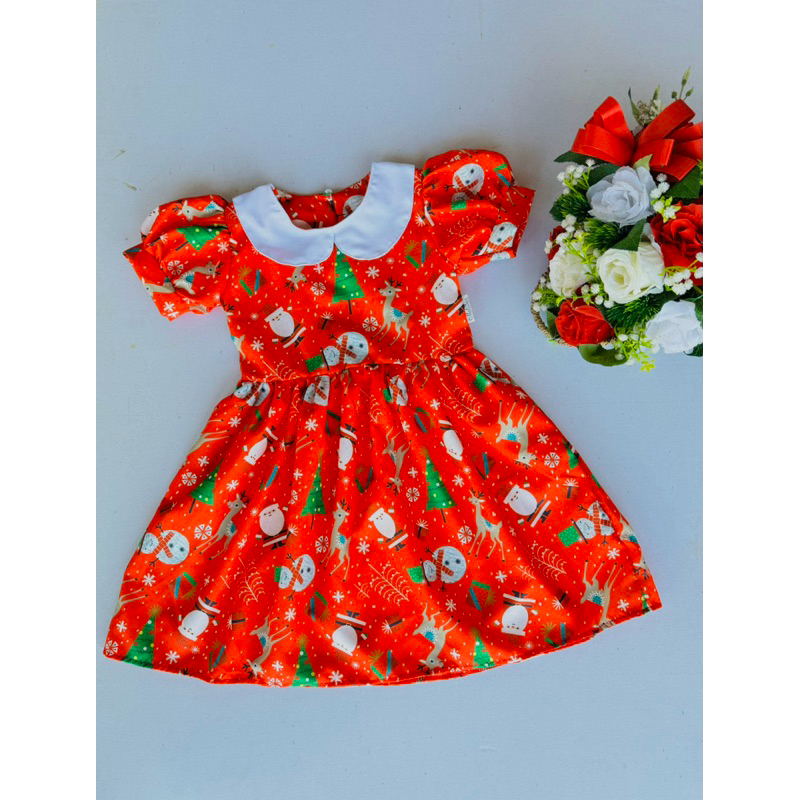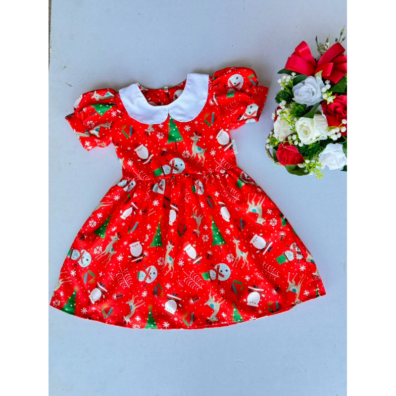 ชุดเจ้าหญิง ชุดเด็ก คอบัว แดง คริสมาส 2-7ขวบ(139)