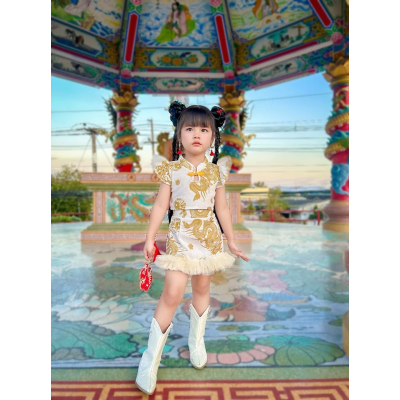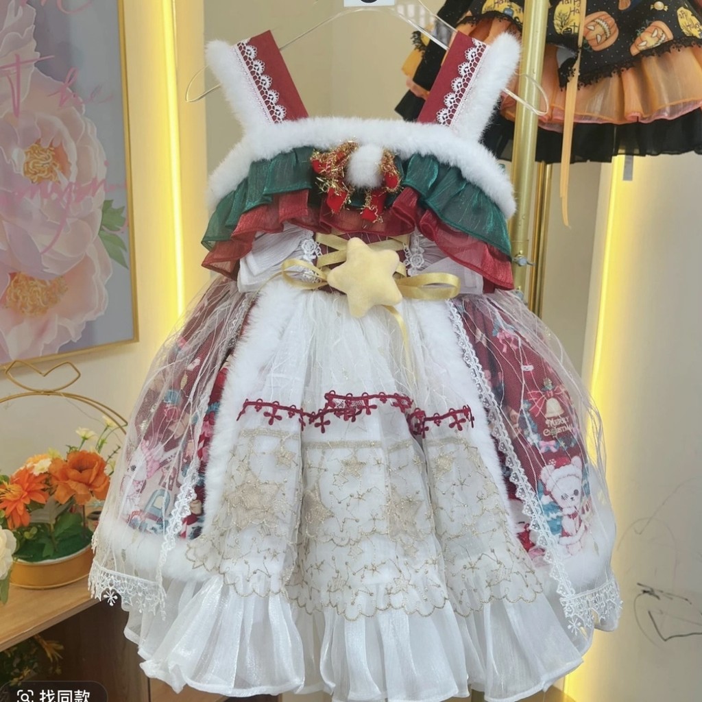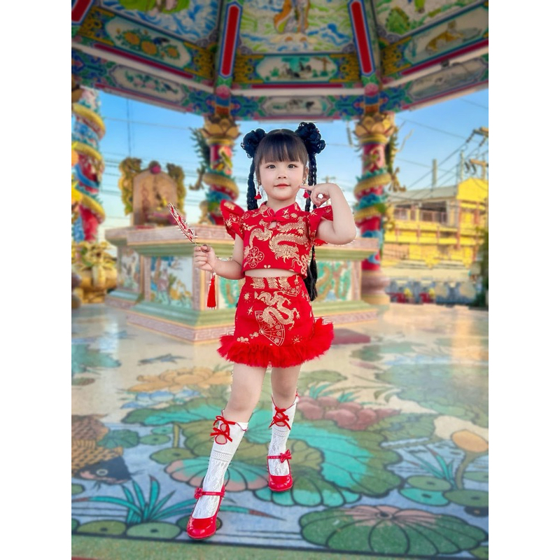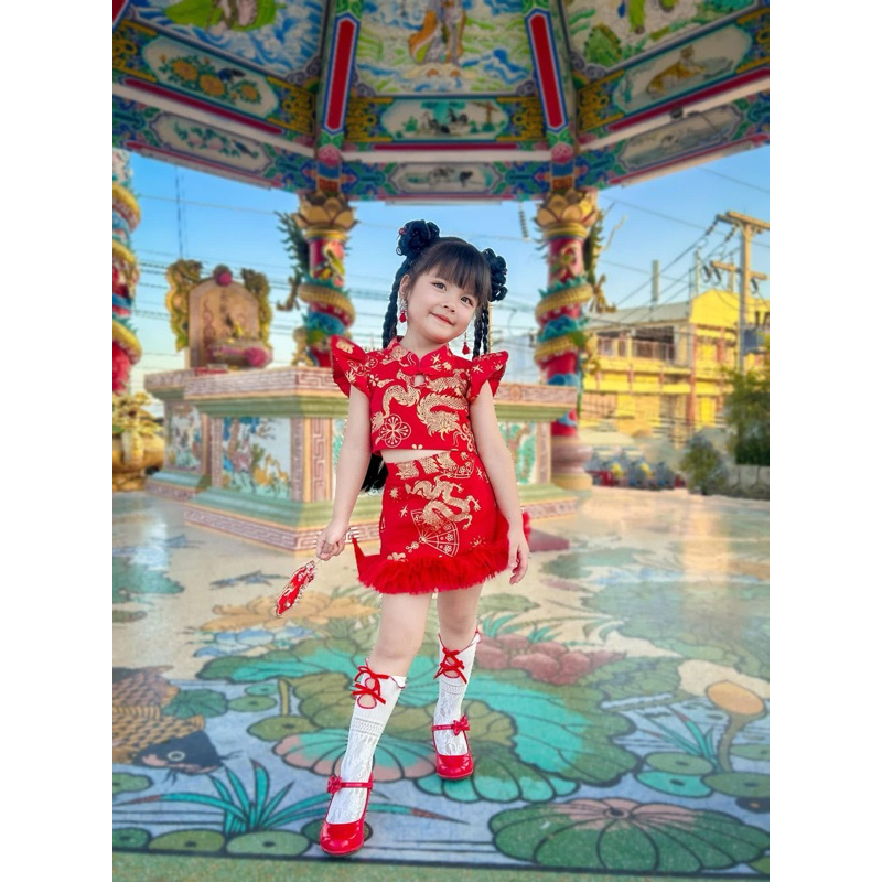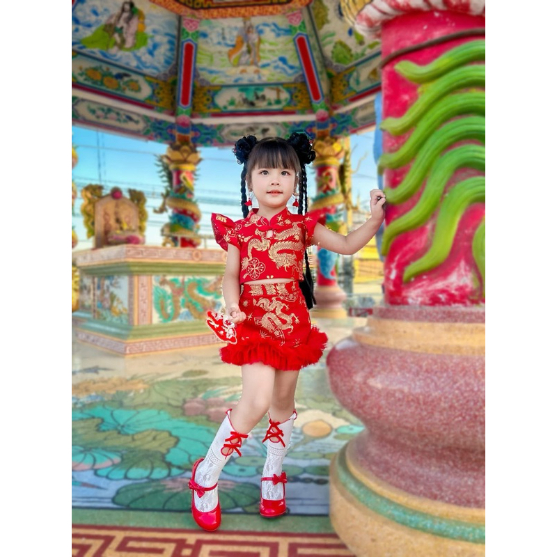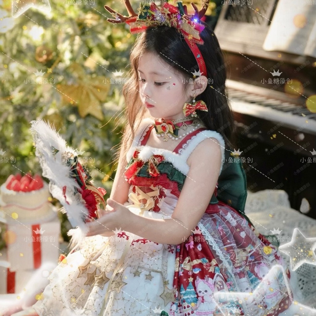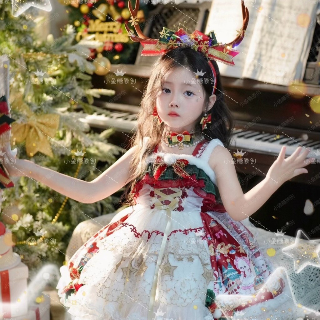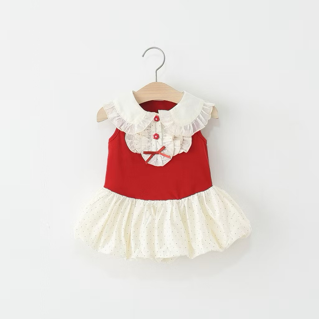 ชุดเจ้าหญิง ชุดเด็ก คอบัว แดง คริสมาส 2-7ขวบ(139)