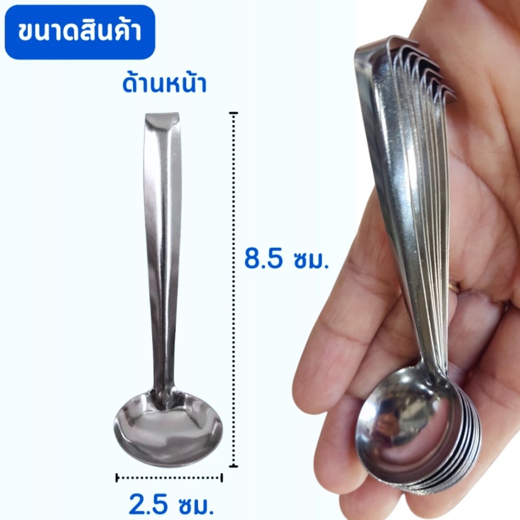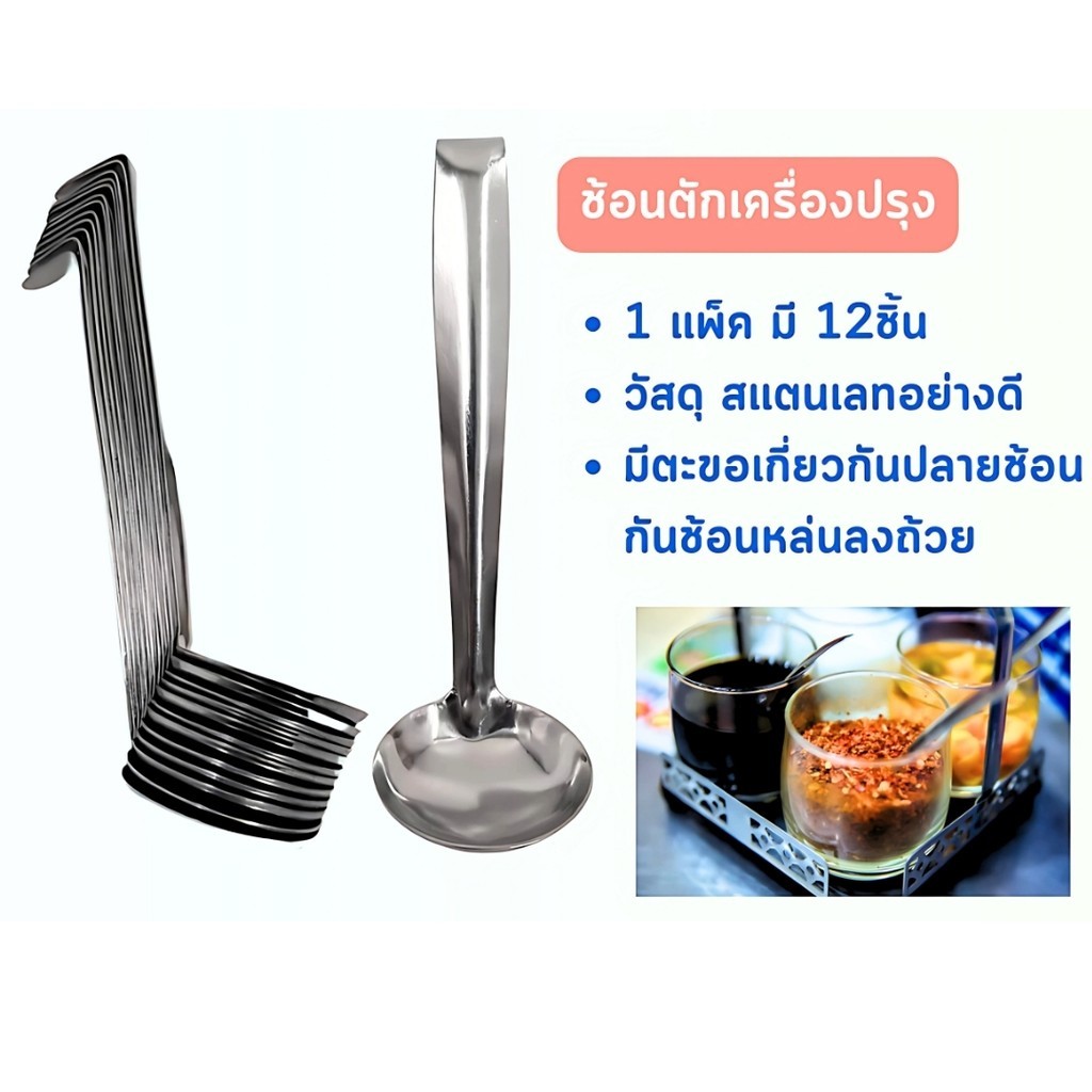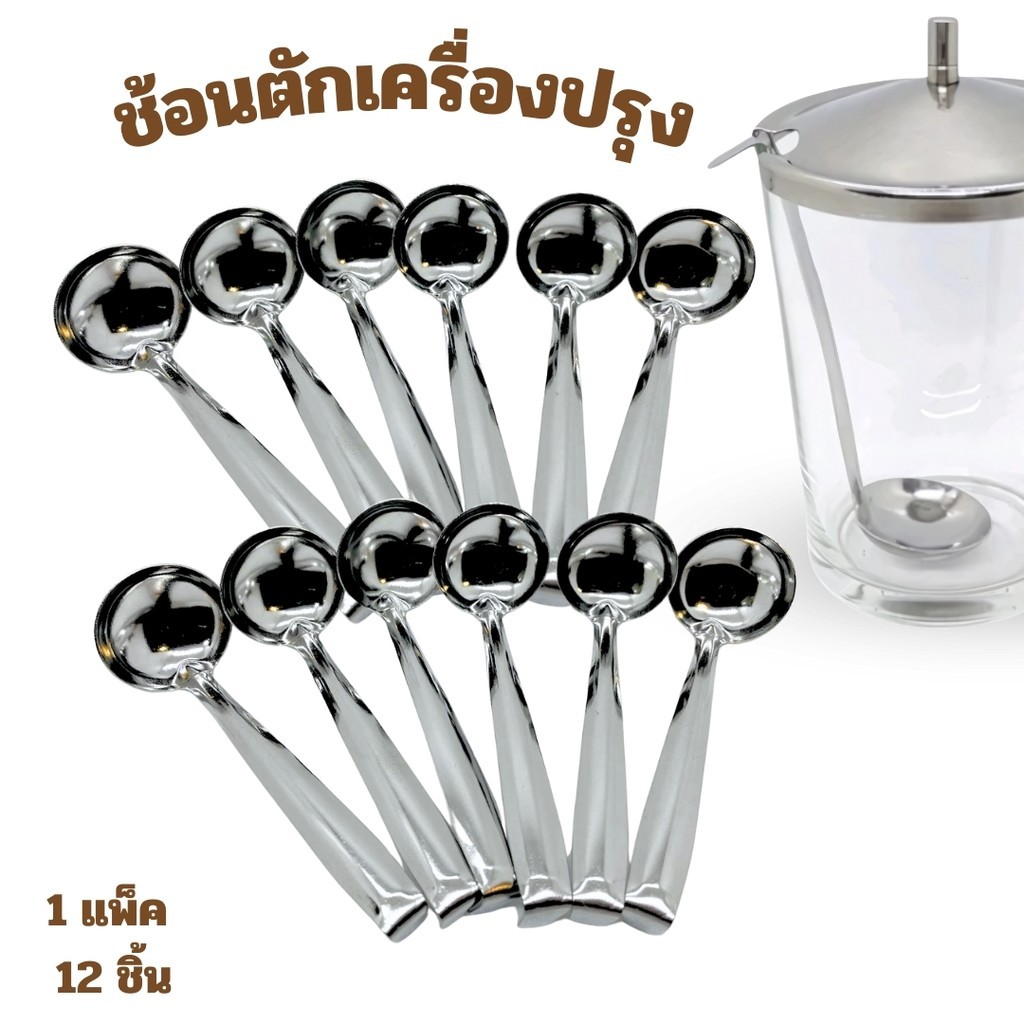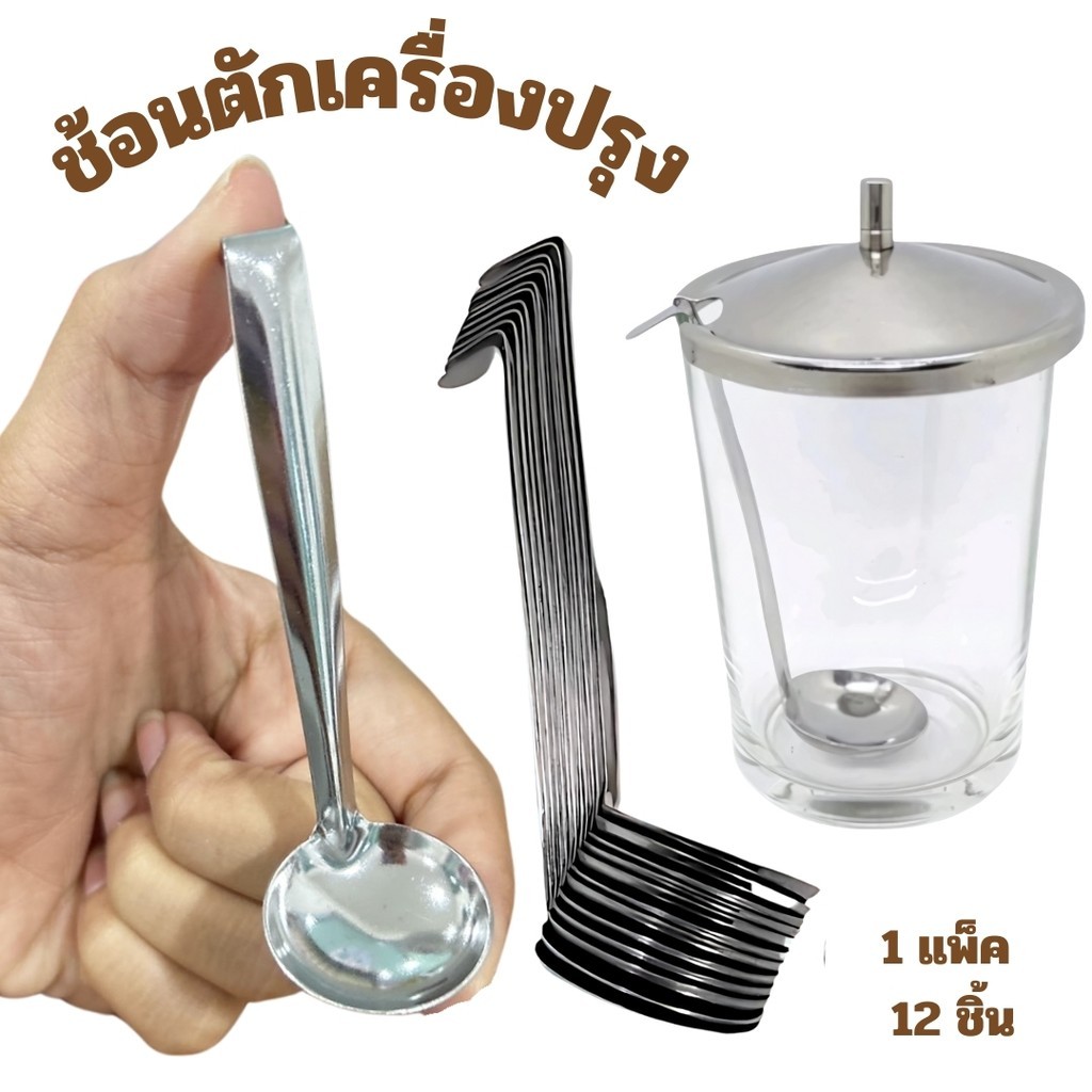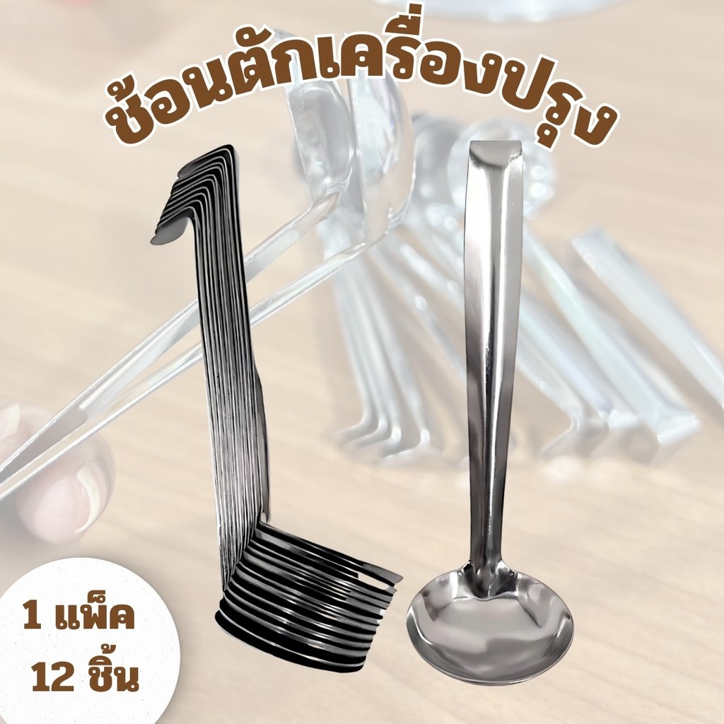 ช้อนตักพริก ช้อนเครื่องปรุง ช้อนตักสแตนเลส กระบวยตักเครื่องปรุง แพ็ค 12 ชิ้น สแตนเลสอย่างดี ตรารถแข่ง ใช้ตักเครื่องปรุง ด้ามงอไม่ต้องกลัวจม พร้อมส่ง
