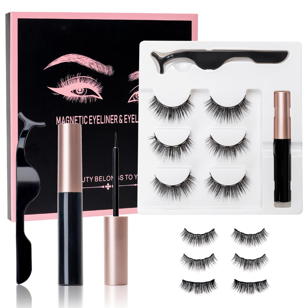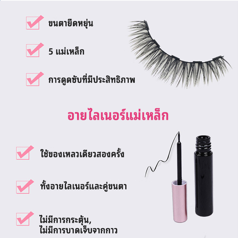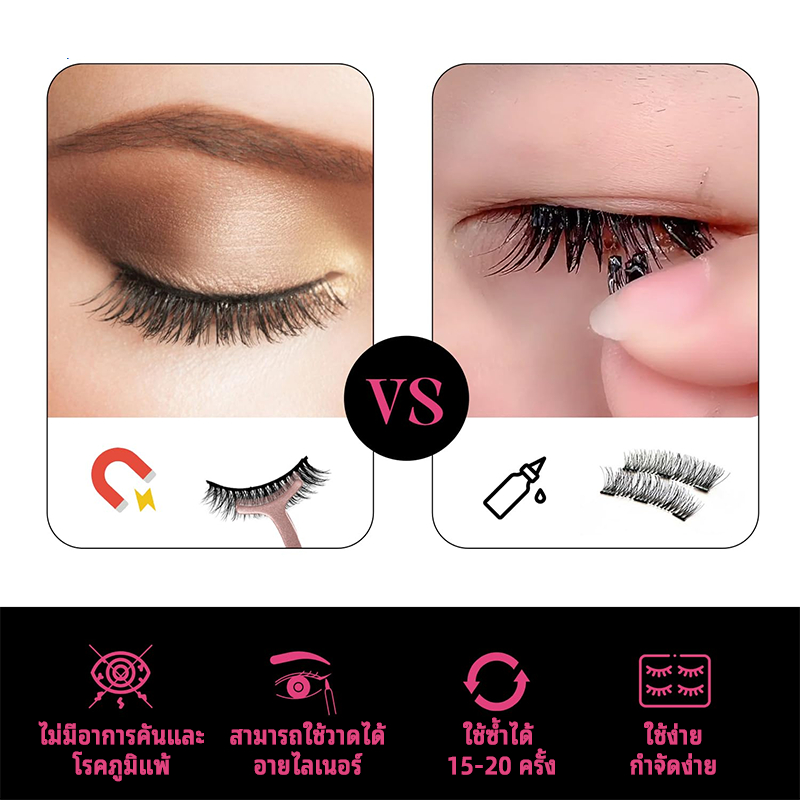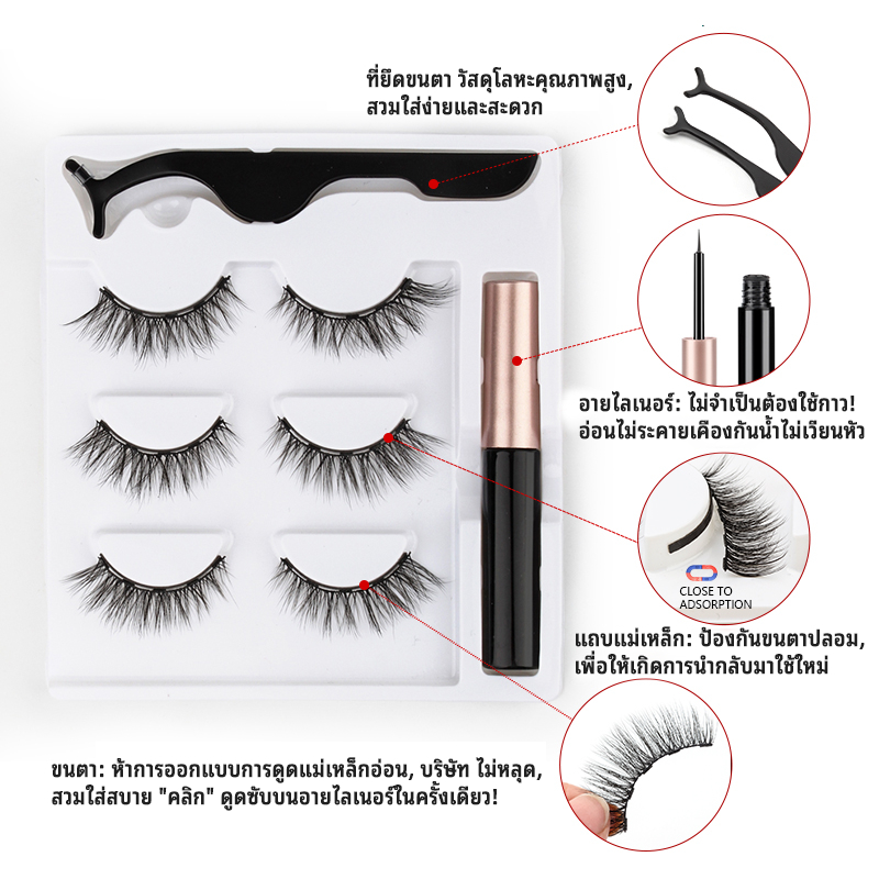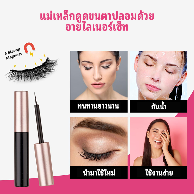 ขนตาปลอมแม่เหล็ก 3D magnetic falseyelashes 7 คู่ ชุดขนตาปลอมแม่เหล็กและอายไลเนอร์