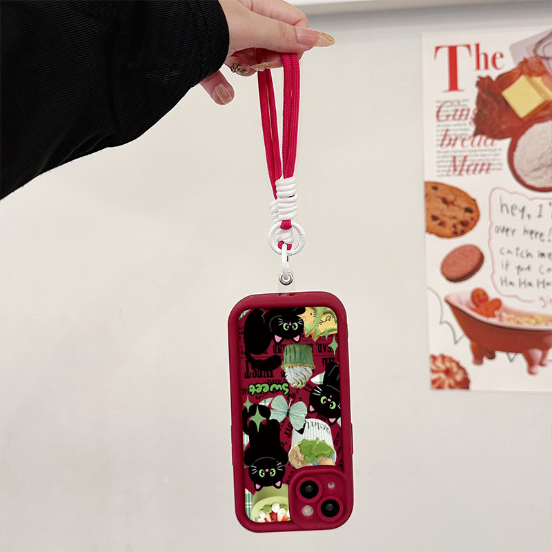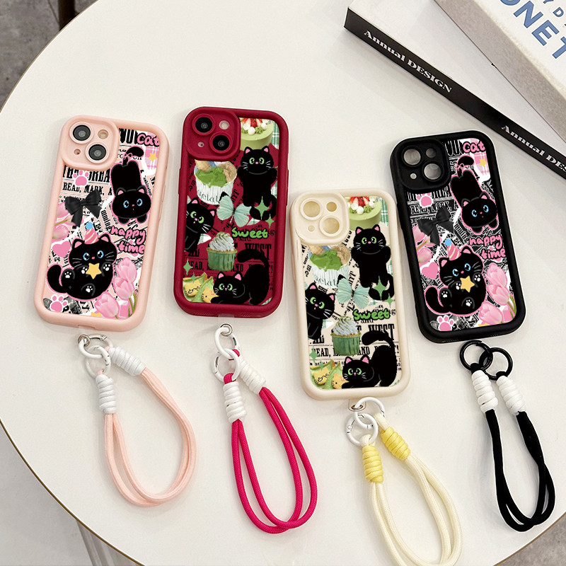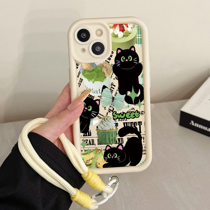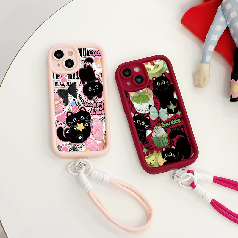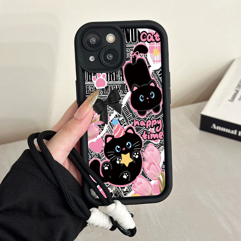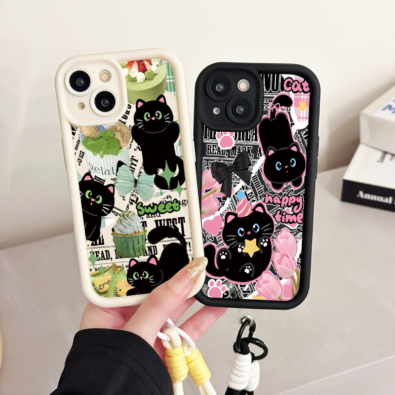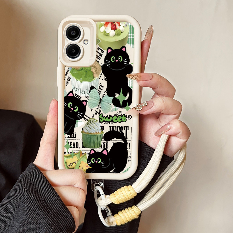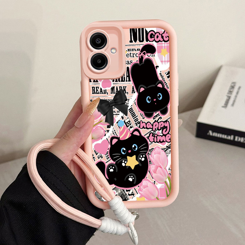 เคสสำหรับ Samsung A06 4G เคสโทรศัพท์แมวผีเสื้อสายคล้องสามสีซิลิโคนกันกระแทก