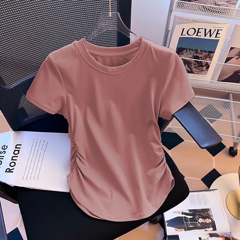 พร้อมส่ง ใหม่ เสื้อยืดลําลอง ผ้าฝ้าย แขนสั้น คอกลม สไตล์เกาหลี สําหรับสตรี