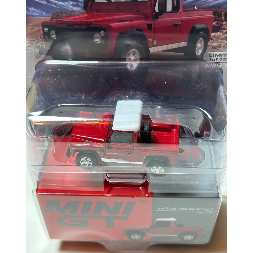 MINI GT No.323 Land Rover Defender 90 Pickup Masai Red LHD / USA Blister Packaging MGT00323-MJ