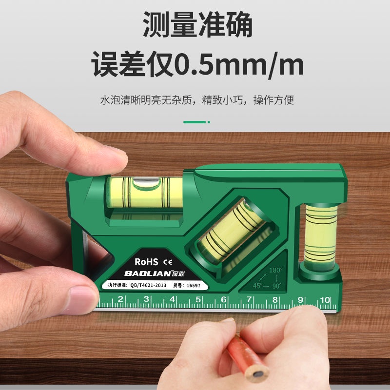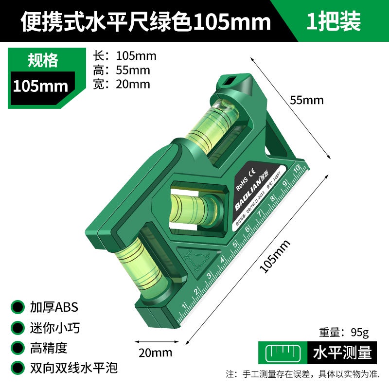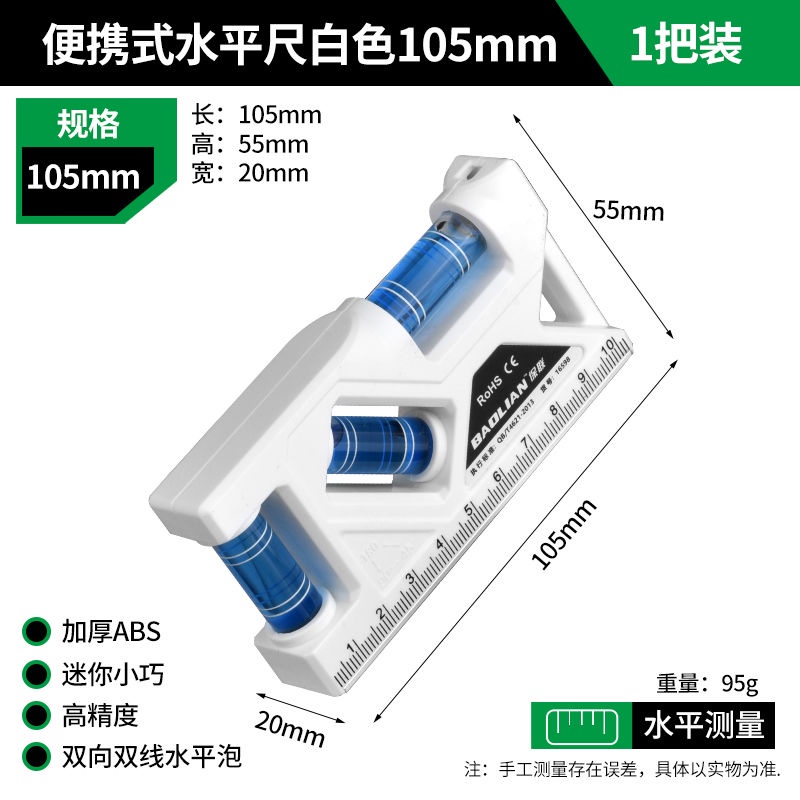 เป่าเหลียน ไม้บรรทัดระดับพกพา 105 มม. แม่เหล็กที่แข็งแกร่งมินิระดับความแม่นยําสูงสมดุลระดับ
