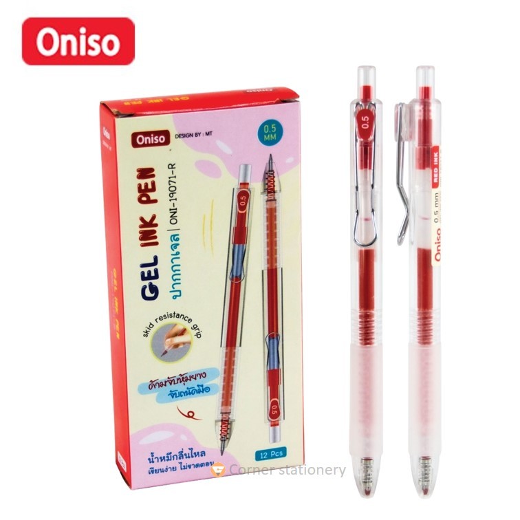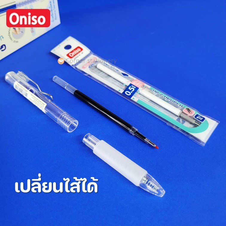ปากกาเจล Oniso ขนาด 0.5 มม.หมึกน้ำเงิน/แดง/ดำ รุ่น oni 19071 เปลี่ยนไส้ได้ ปากกาโอนิโซะ แห้งไว