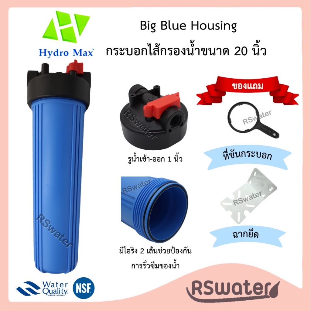 กระบอกกรองน้ำ 20” รุ่น บิกบลู Big Blue Housing ขนาด 20” เป็นกระบอกกรองน้ำใช้ ยี่ห้อ Hydromax