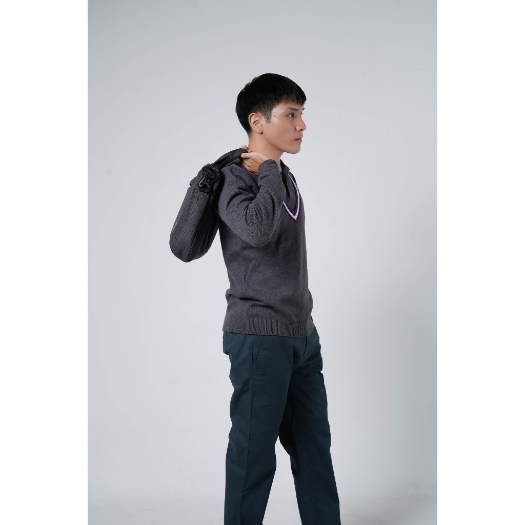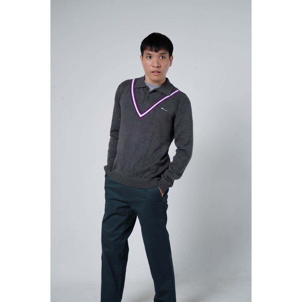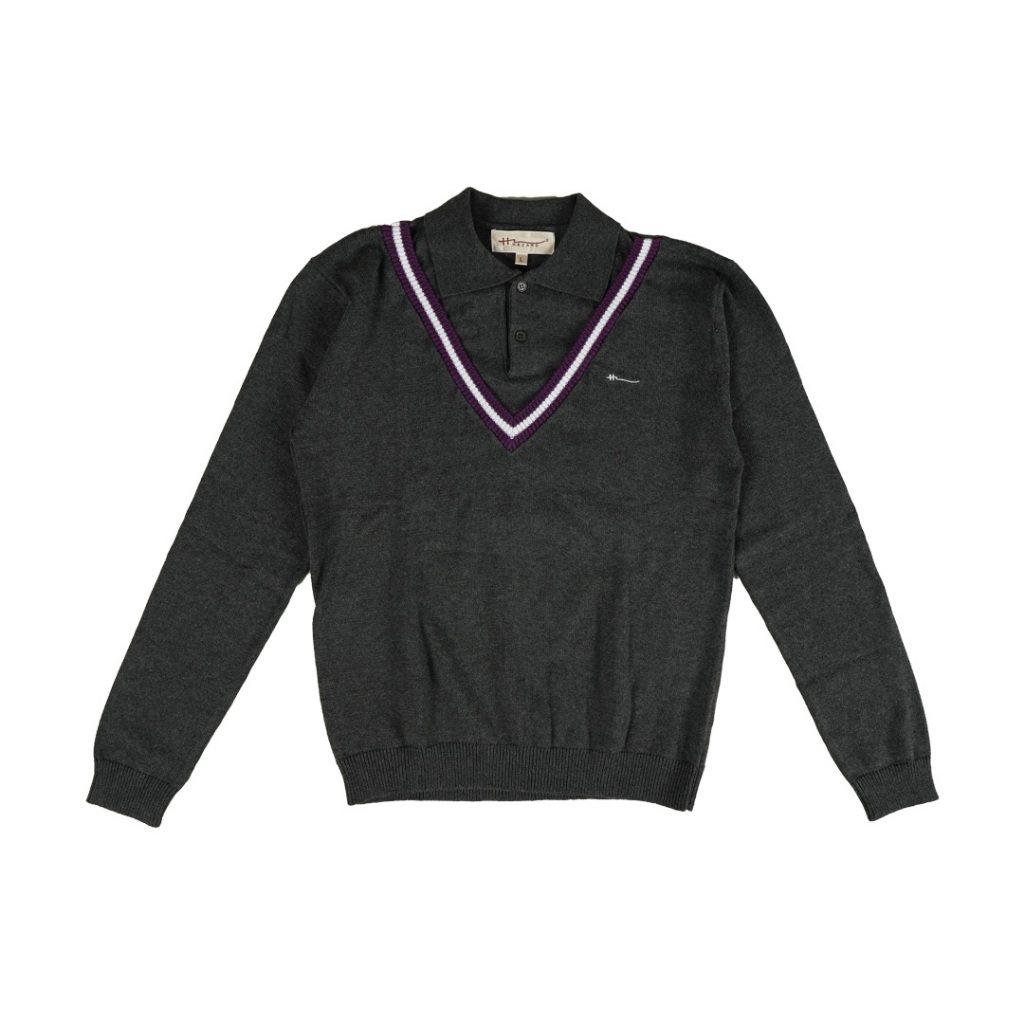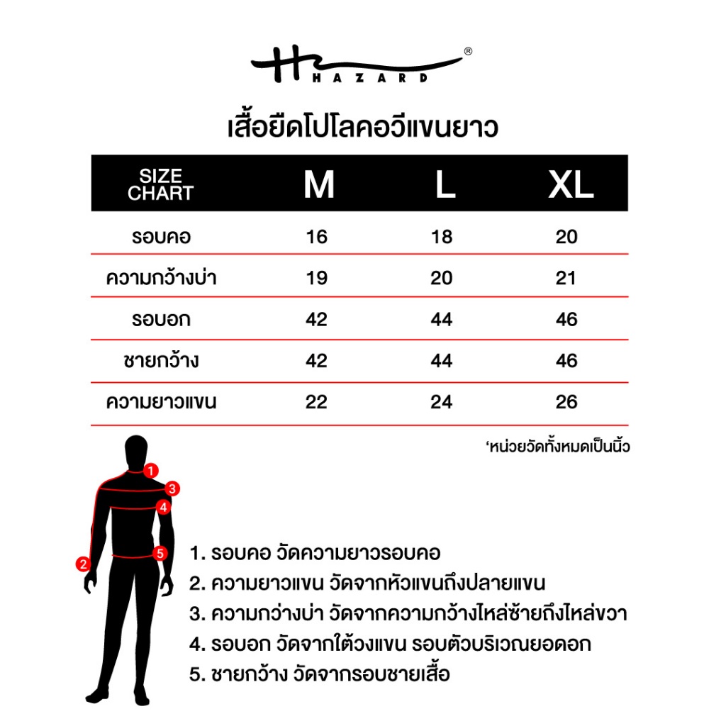 Hazard เสื้อยืดโปโลคอวีแขนยาวสีพื้น Hazard สีดำ