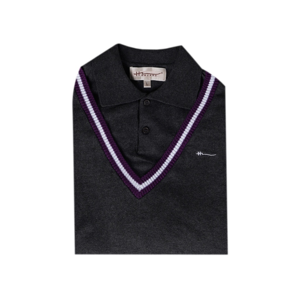 Hazard เสื้อยืดโปโลคอวีแขนยาว ผ้า Cotton(คอตตอน) รุ่น HZN1800418 สีดำ