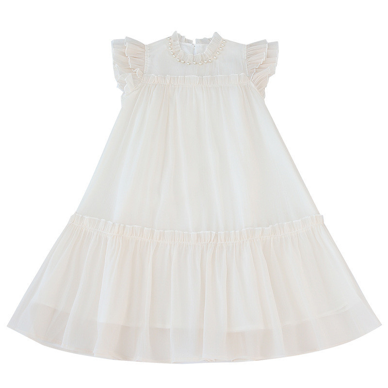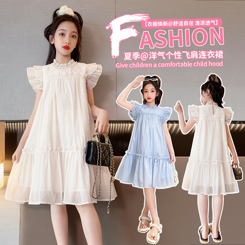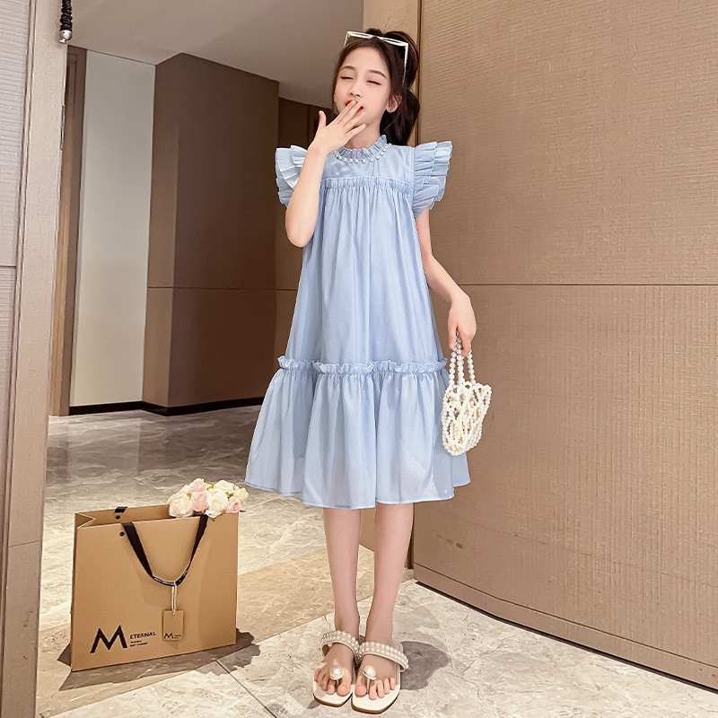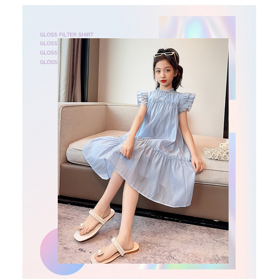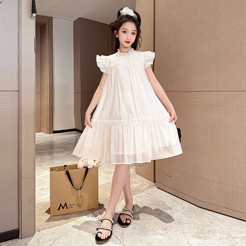 ชุดเดรสเด็กผู้หญิง 2025 สไตล์ใหม่ ชุดเดรสแขนสั้นสำหรับเด็กผู้หญิง ชุดเจ้าหญิงหรูหรา ชุดชายหาดแขนสั้นสำหรับเด็กโต