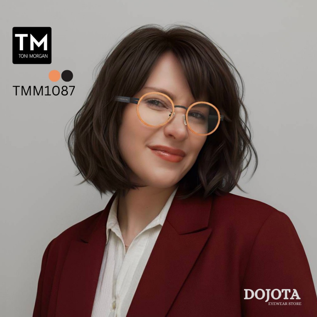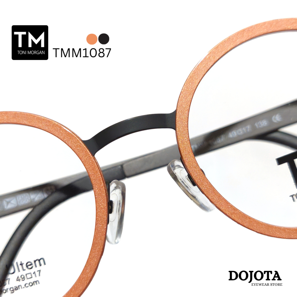 Toni Morgan กรอบแว่นตาสีส้ม Peach ทรงกลม รุ่น TMM 1087 น้ำหนักเบา วัสดุยืดหยุ่นได้ดี Made in Korea