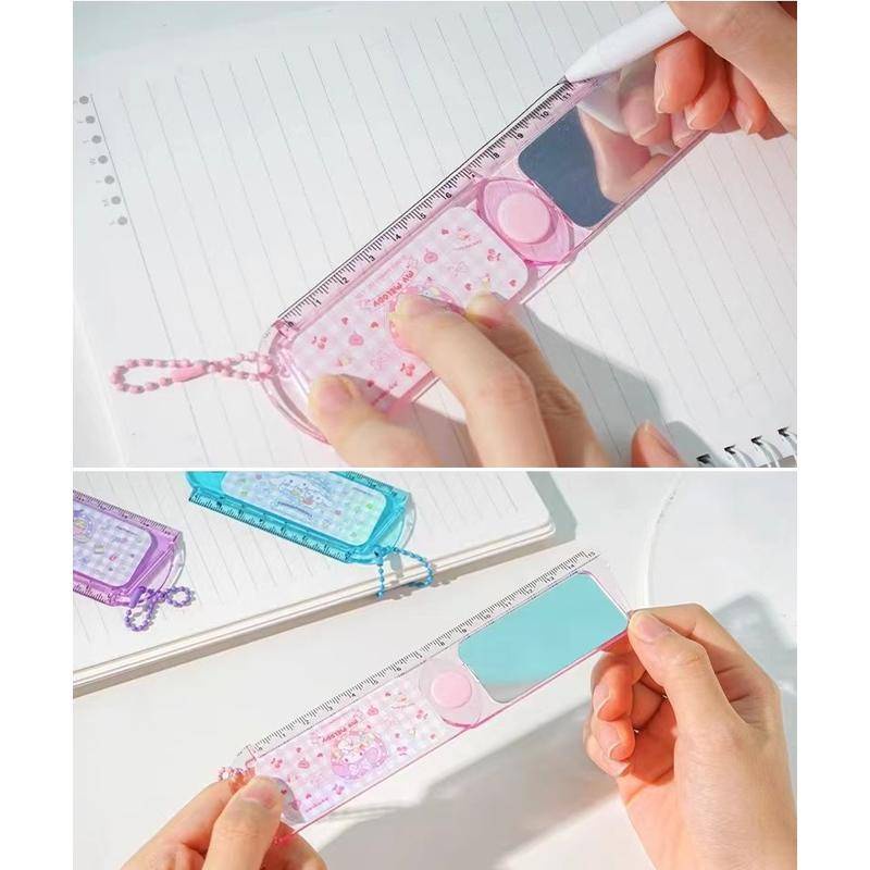 Sanrio ไม้บรรทัด ลายการ์ตูน Mymelody Kuromi Cinnamoroll อเนกประสงค์ พับได้ พร้อมกระจก 15 เซนติเมตร ของขวัญวันเกิด สําหรับโรงเรียน