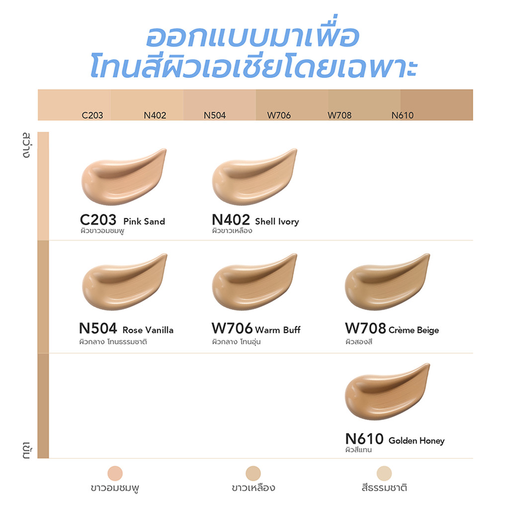 รองพื้นสูตรผสมสกินแคร์ เนื้อบางเบา สบายผิว เกลี่ยง่าย สูตรสำหรับผิวมัน อัดแน่นด้วยส่วนผสมบำรุงผิวอย่าง Ceramide (เซราไมด์) และ Centella Asiatica Extract (สารสกัดจากใบบัวบก) ให้ผิวดูเนียนสวยเสมือนใส่ฟิลเตอร์ 1 ติดทนยาวนาน 24 ชั่วโมง สูตรค