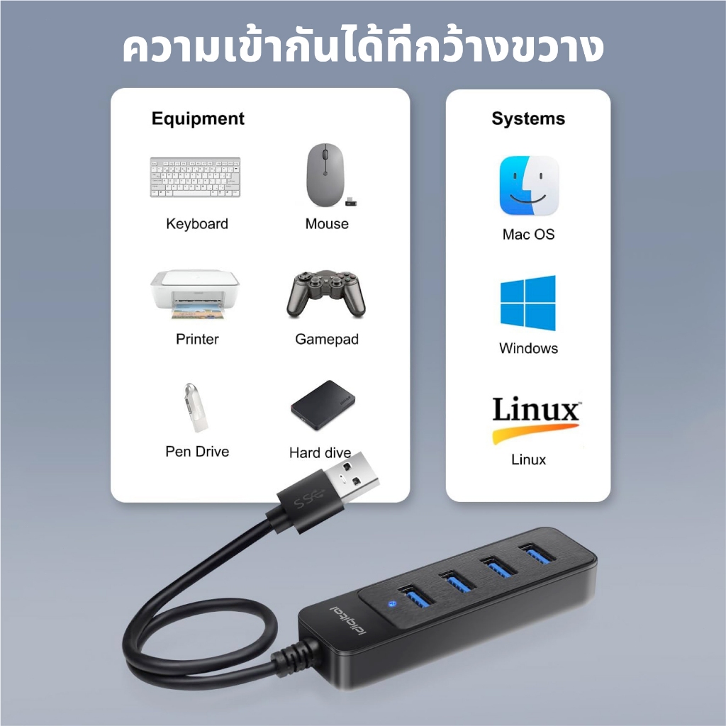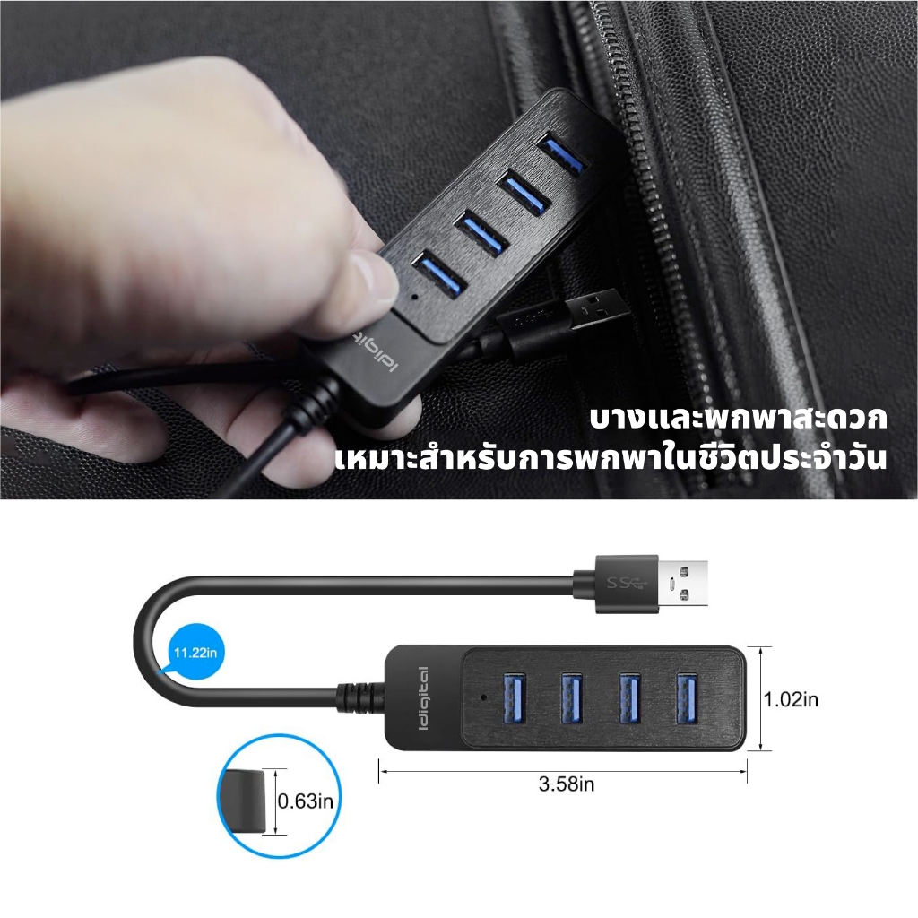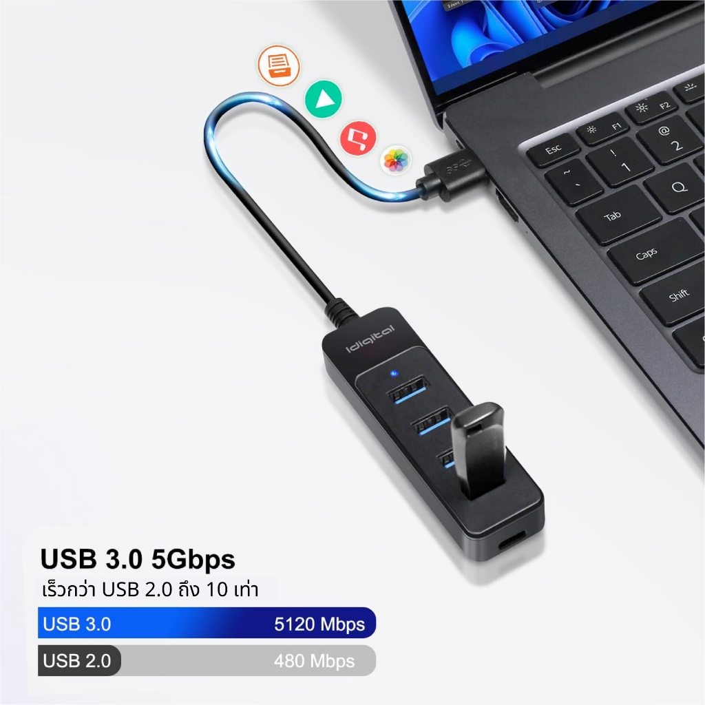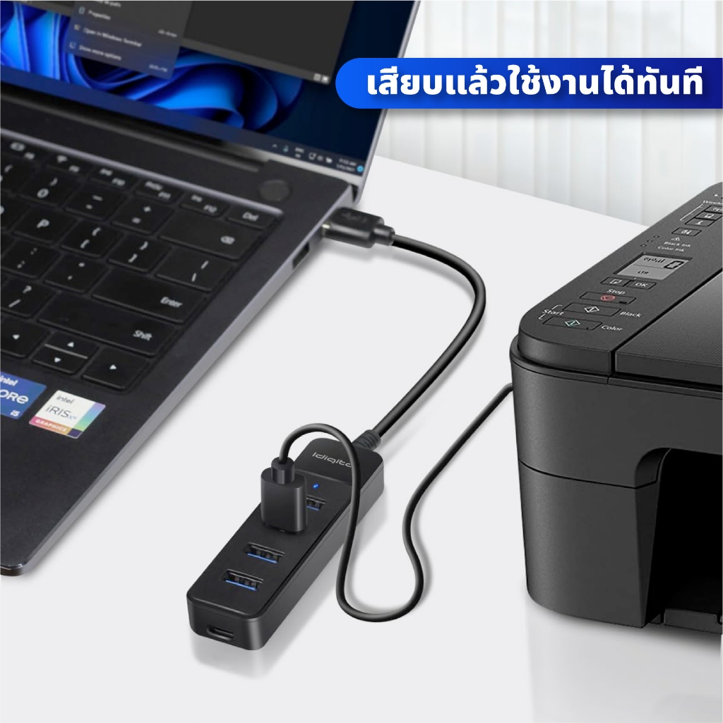 ⚡ส่งจาก กทม⚡Idigital USB HUB, USB3.0*1, USB 2.0*3, พร้อมพอร์ตจ่ายไฟ Type-C รองรับฮาร์ดไดรฟ์ภายนอกสูงสุดถึง 18TB