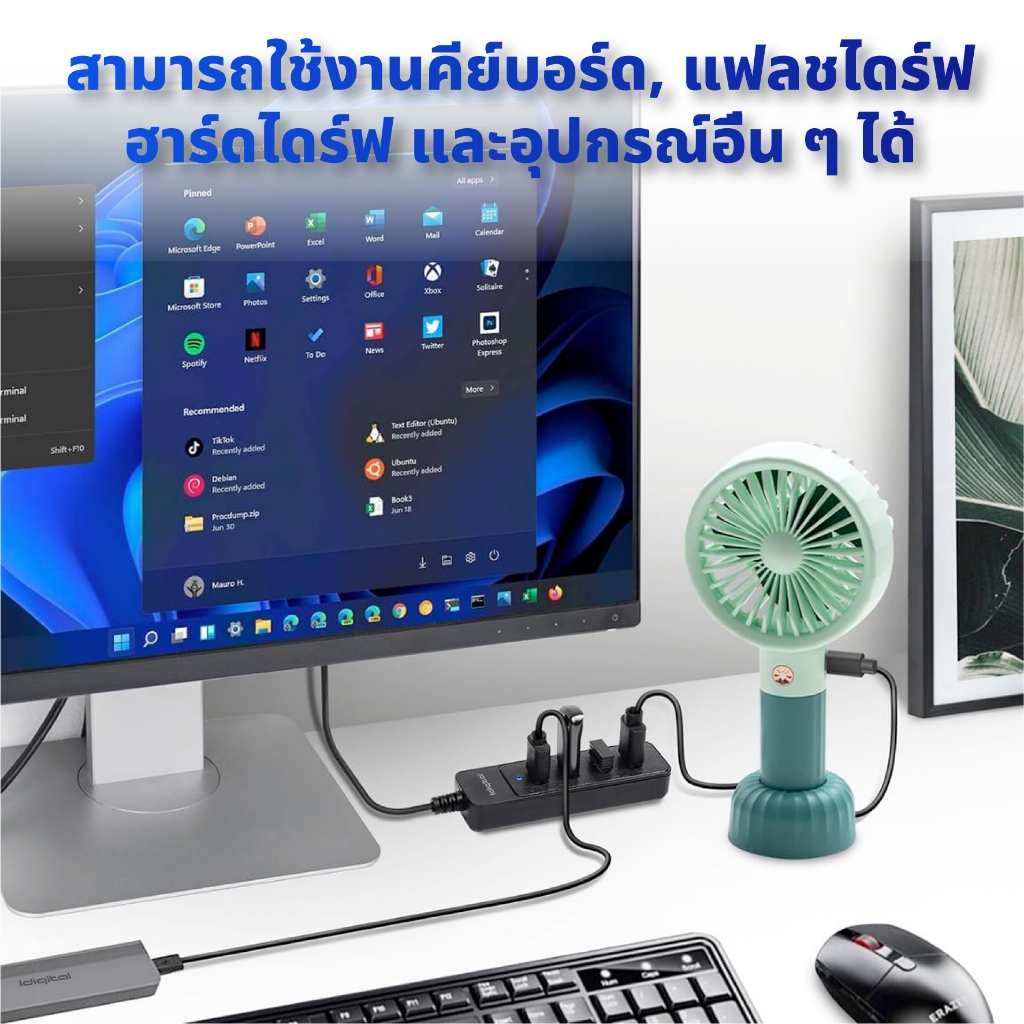 ? USB Hub (พร้อมพอร์ตจ่ายไฟ Type-C รองรับฮาร์ดไดรฟ์ภายนอกสูงสุดถึง 18TB)