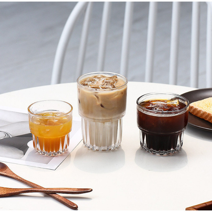 รวมแก้วกาแฟ เนื้อแก้วใส คุณภาพดี ใส่เครื่องดื่มได้หลายประเภท สั้นเตี้ย ทรงชั้น สไตล์เกาหลีน่ารัก