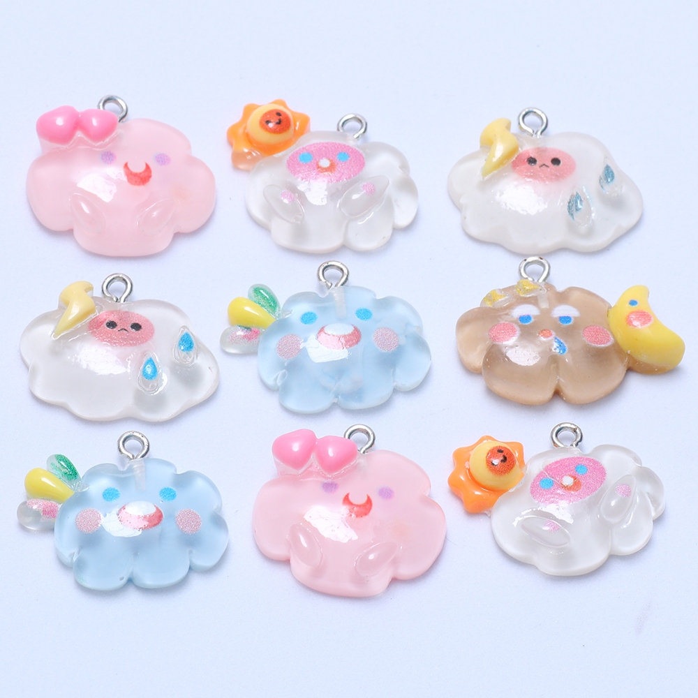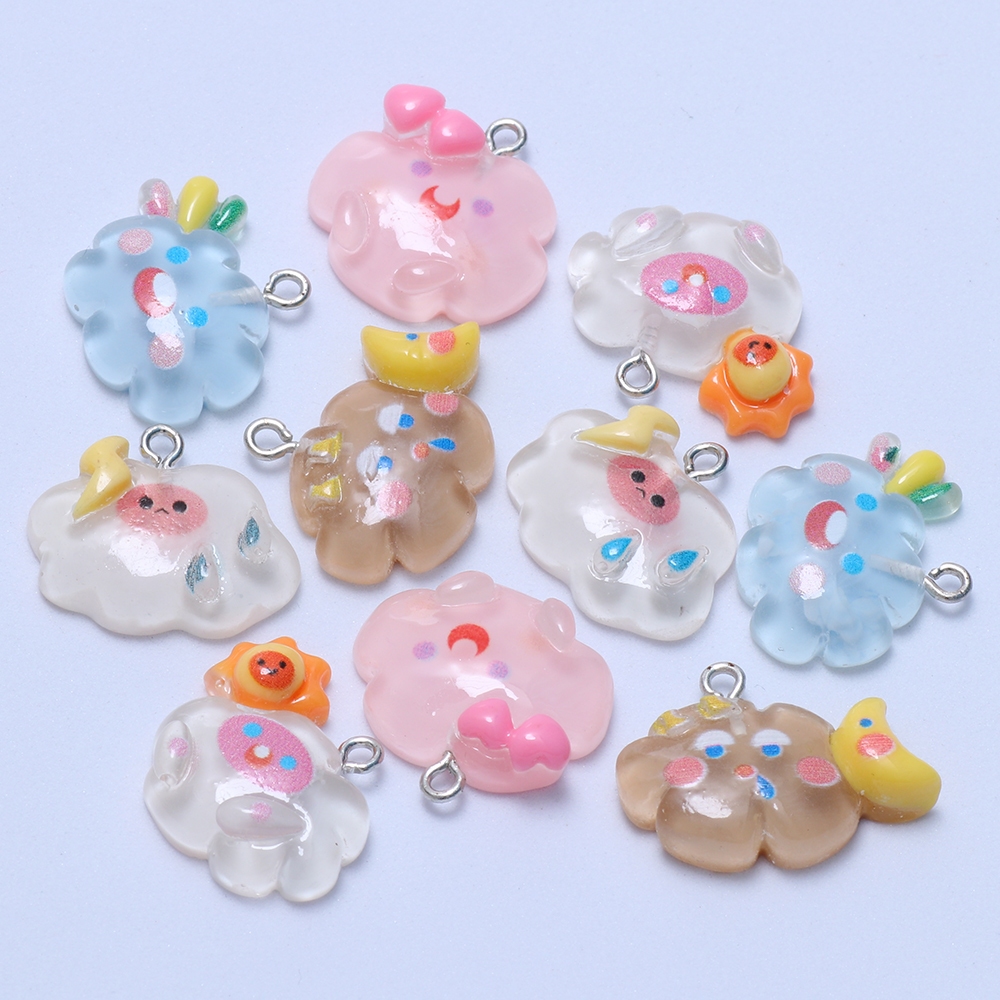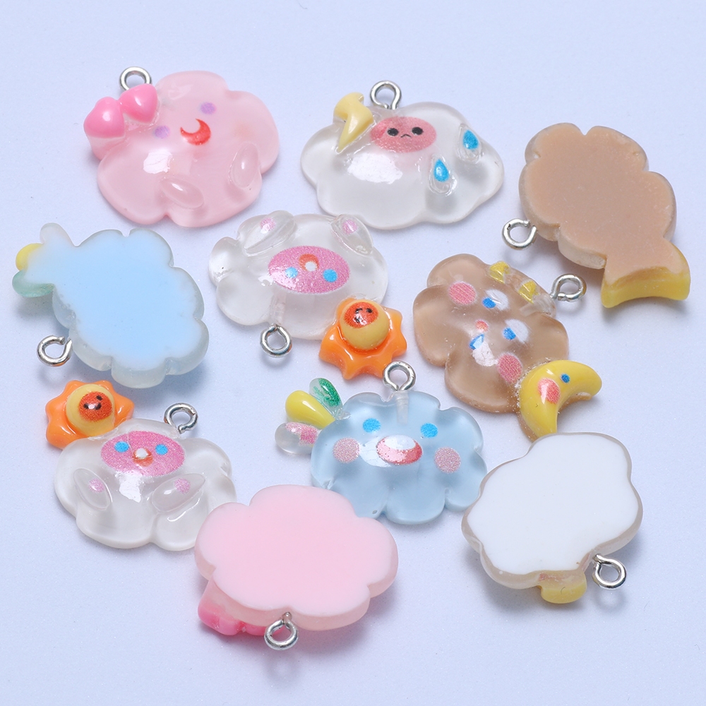 10pcs ใหม่ Kawaii เรซิ่นจี้ Cloud Sun Moon Charm DIY สร้อยคอสร้อยข้อมือต่างหูพวงกุญแจอุปกรณ์เสริม