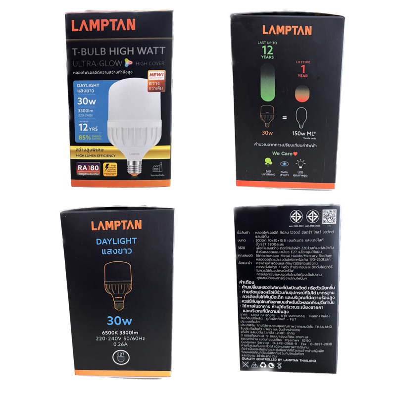 LAMPTAN หลอดทรงกระบอก T-BULB สว่างพิเศษ แสงขาว ขั้วE-27 30w 40w 50w