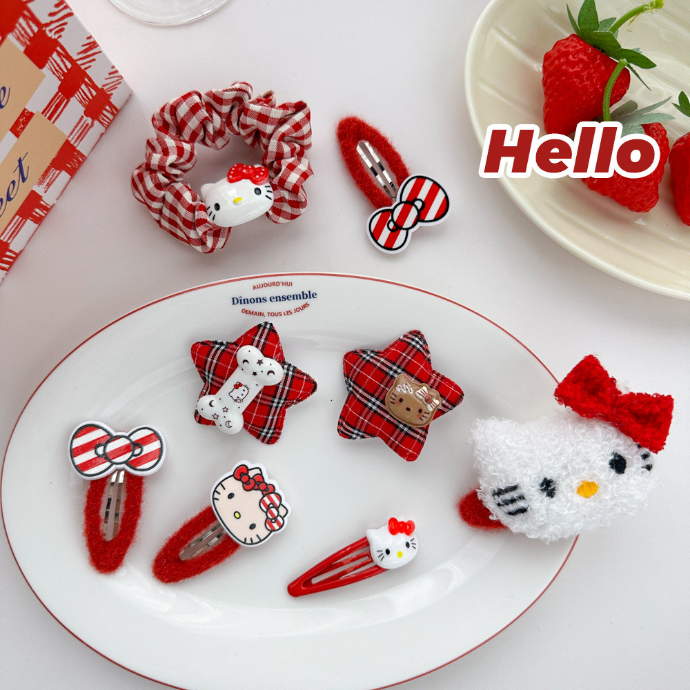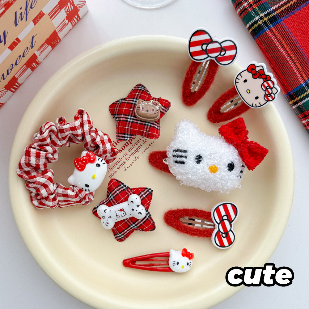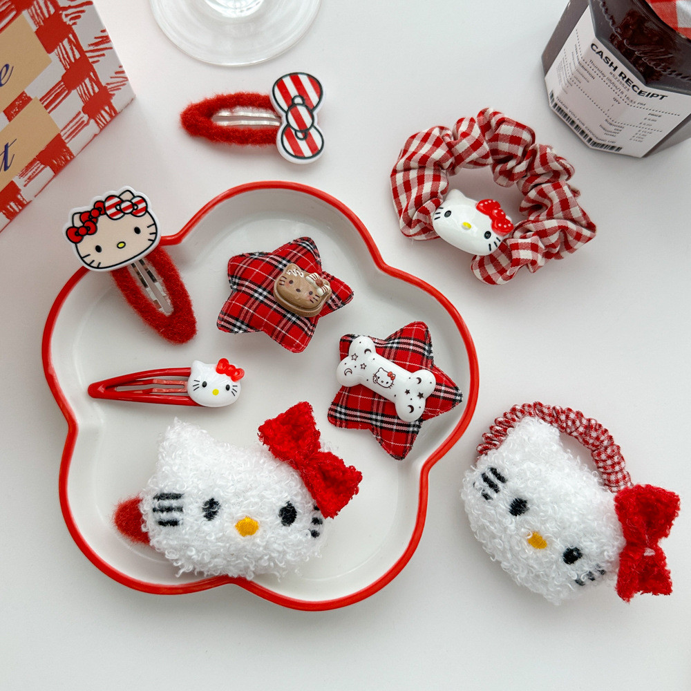การ์ตูนน่ารักสีแดงคิตตี้ชุด barrettes วงผมสาวหวานเรียบด้านคลิป hairware ฤดูใบไม้ร่วงและฤดูหนาว