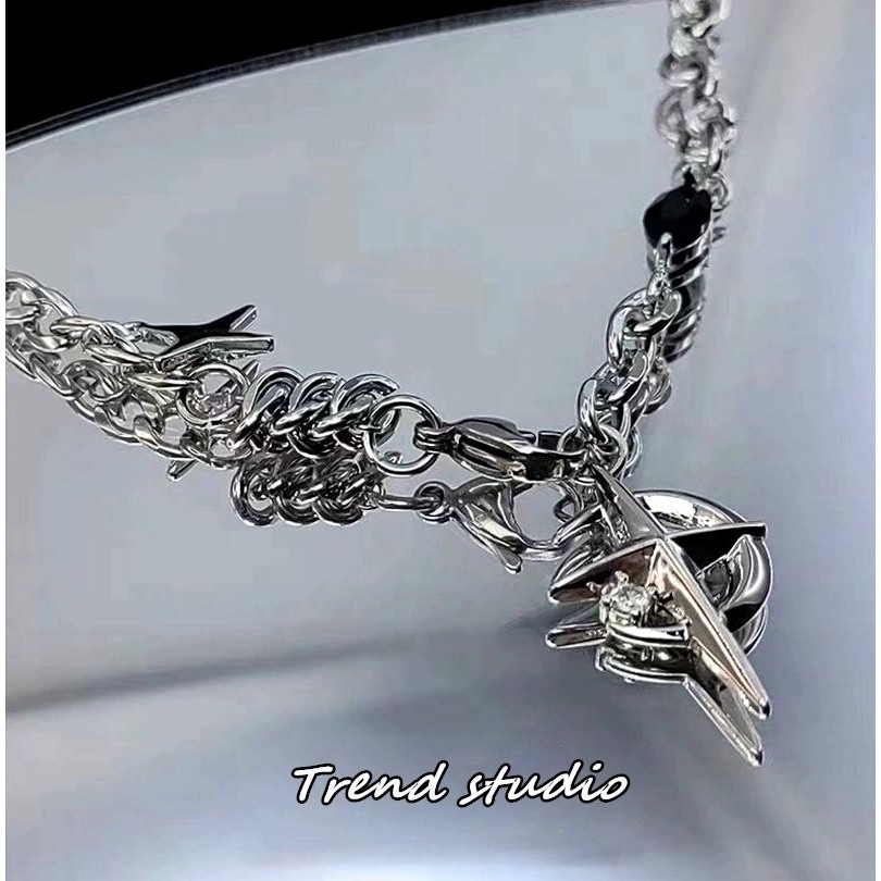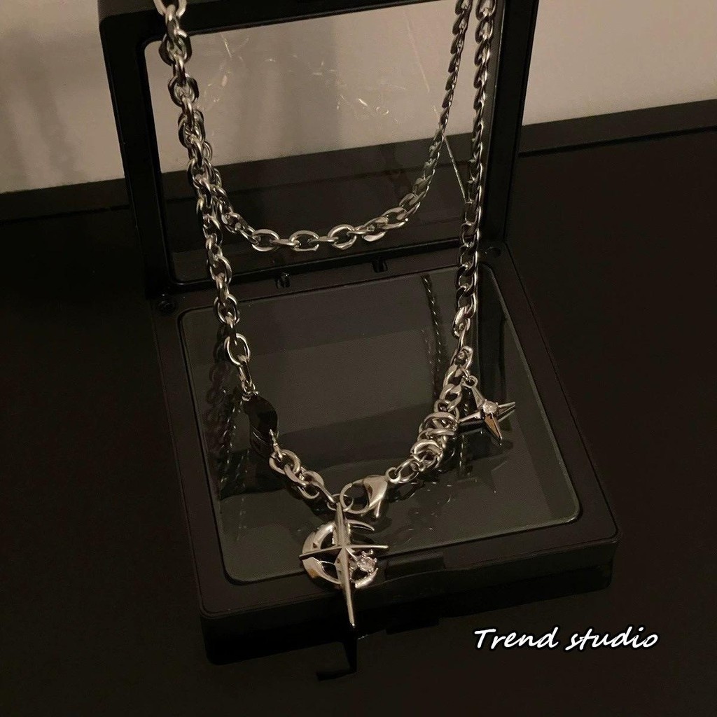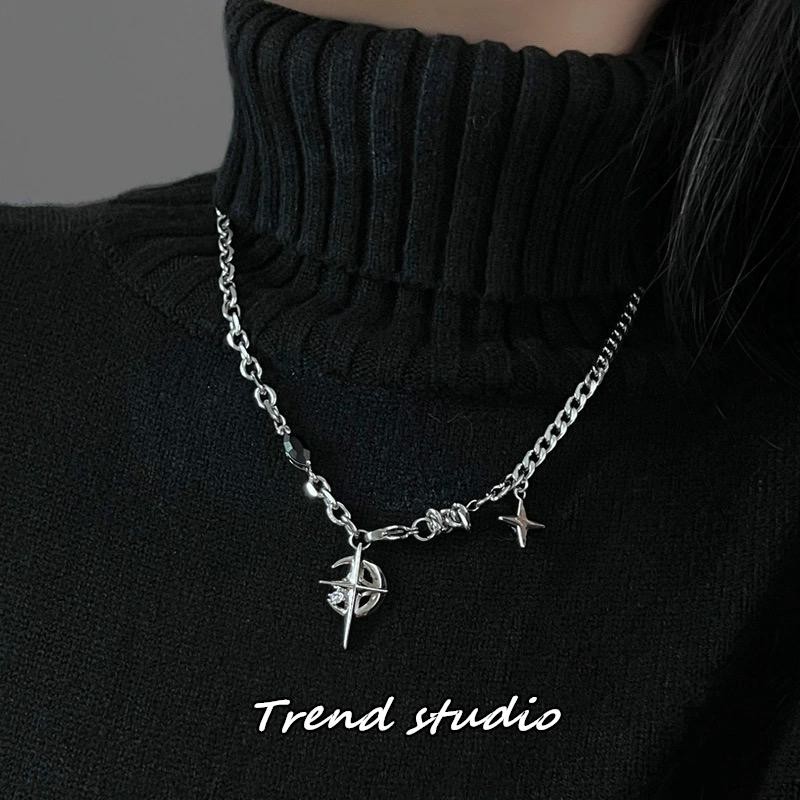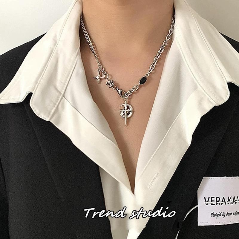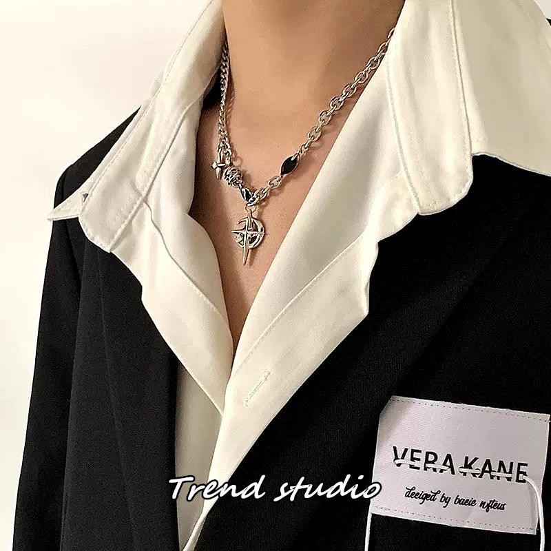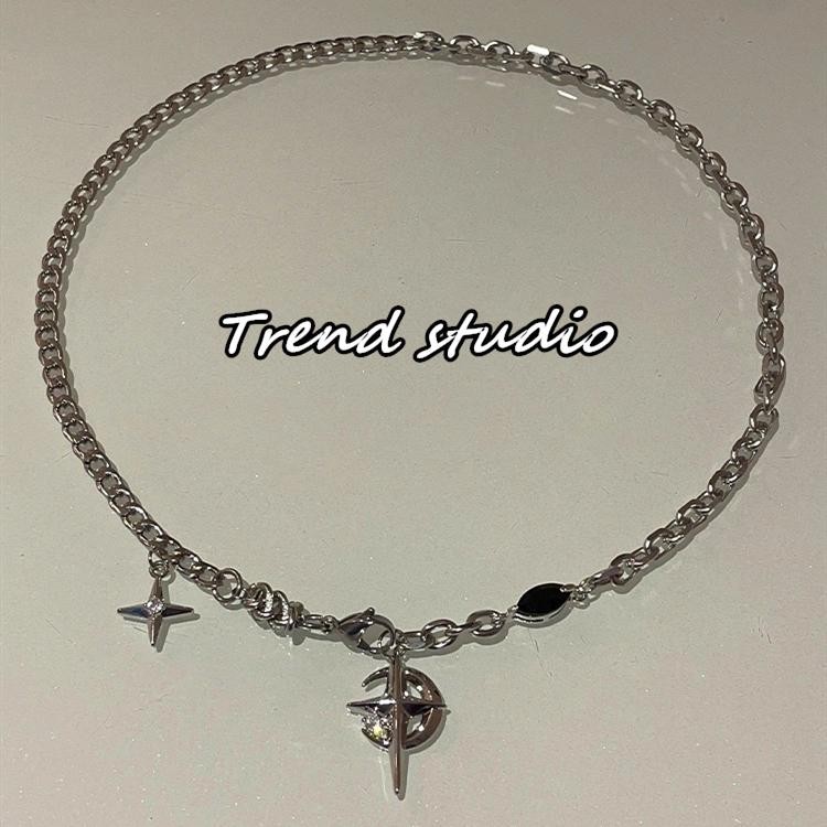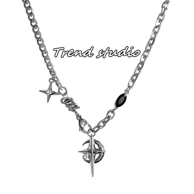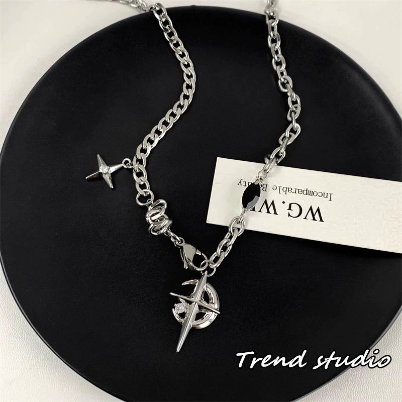 สร้อยคอพระจันทร์เสี้ยวเพทายสีดำ คอลเลกชันสร้อยคอแฟชั่นฮิปฮอป ทำจากเหล็กไทเทเนียม มันจะไม่จางหาย.