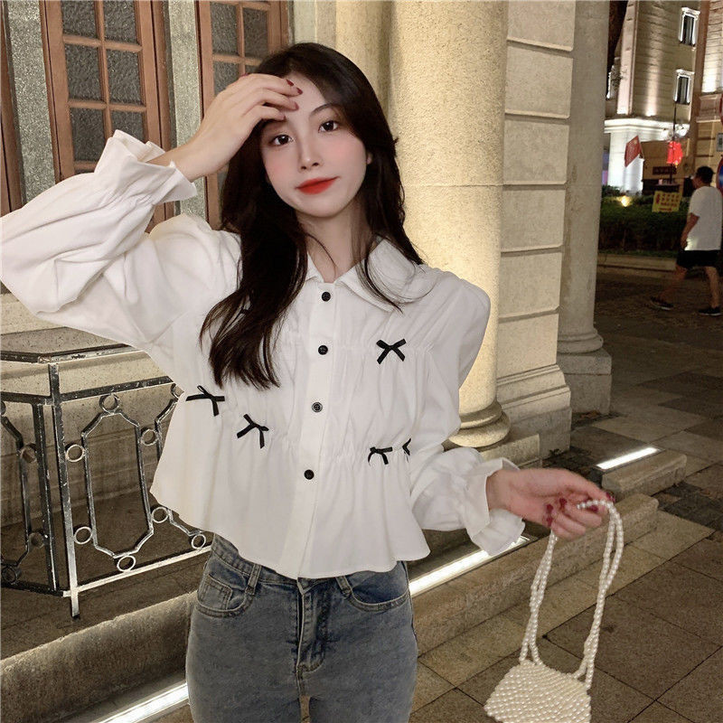 ส่งจากกรุงเทพฯ ของมาใหม่ เสื้อหลวม ฤดูร้อน หญิง สไตล์เกาหลี โบว์สีทึบ