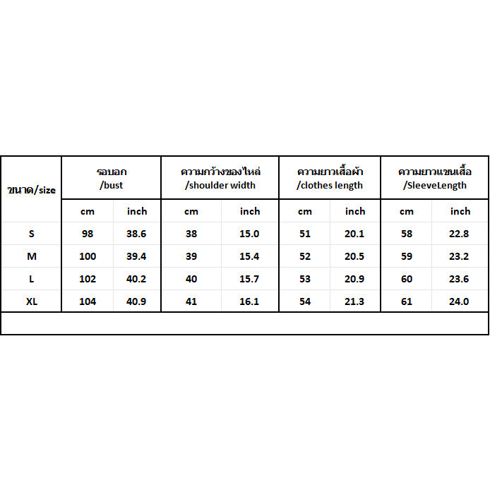ความยาวเสื้อผ้า/ความยาวแขนเสื้อ: แขนสั้น/แขนยาว