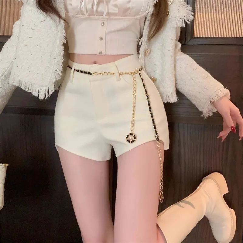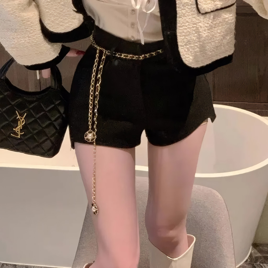 เข็มขัดโซ่โลหะ แบบบาง จี้แคบ เข้ากับทุกการแต่งกาย สไตล์เกาหลี แฟชั่นสําหรับผู้หญิง
