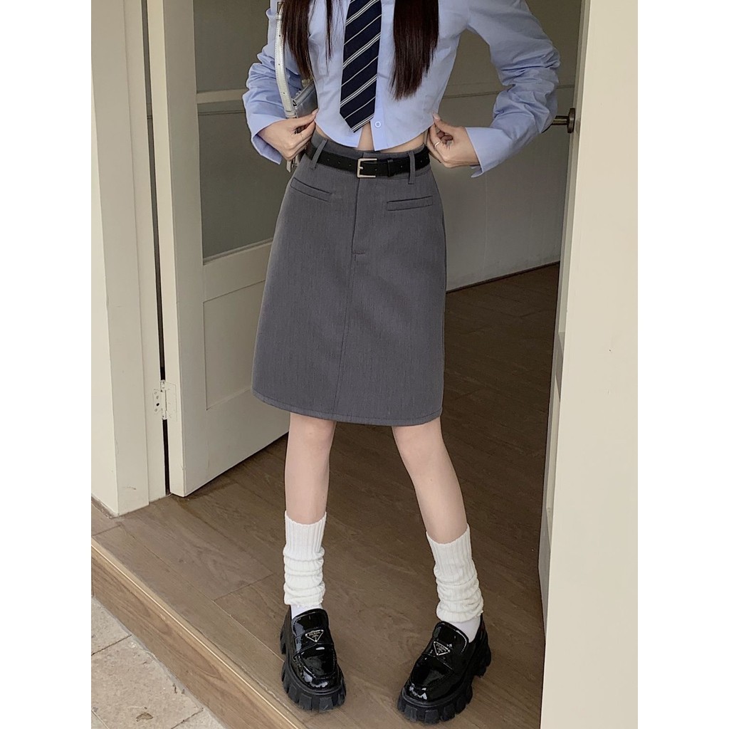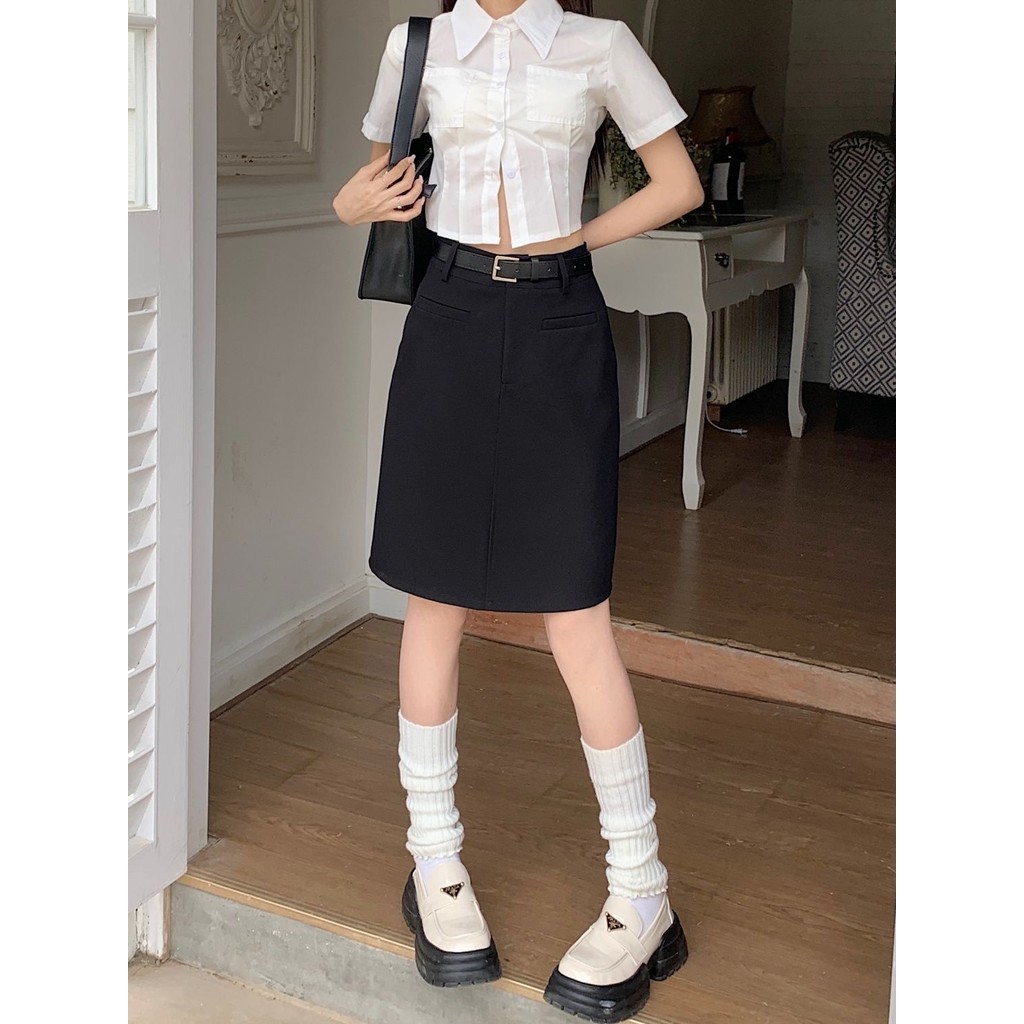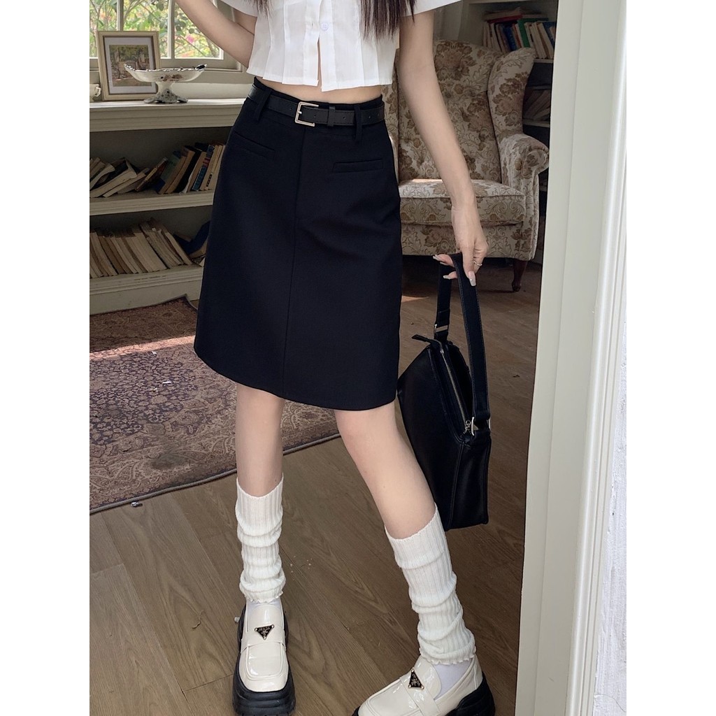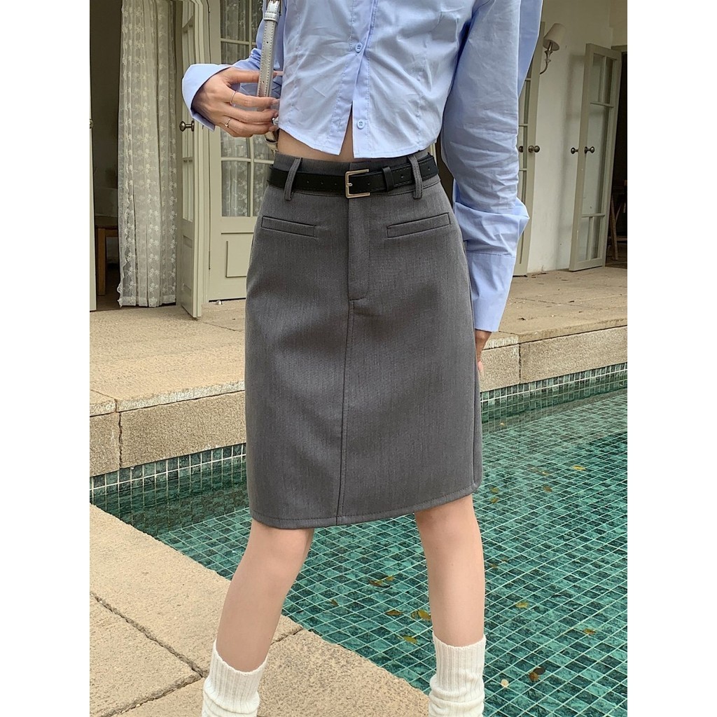 กระโปรงประกบกระโปรงสตรีขนาดบวกกระโปรงยาวปานกลางเอวสูงฝรั่งเศส