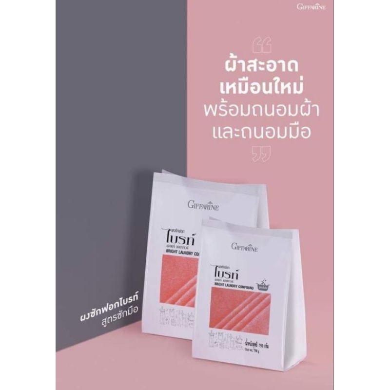 ผงซักฟอกไบรท์ กิฟฟารีน สูตรซักมือ ซักเครื่อง ตากในที่ร่ม สลายทุกคราบ สะอาดใหม่หมดจด ผ้าสีสดใส