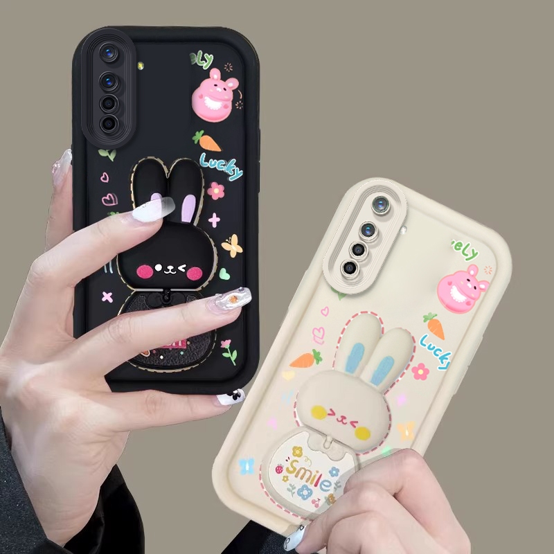 FOR เคส เคสสําหรับRealme 6 pro realme 6 เคสโทรศัพท์Softcaseซิลิโคนกันกระแทกใหม่ออกแบบกระจกความงามกระต่ายพร้อมที่วางJETZJ01
