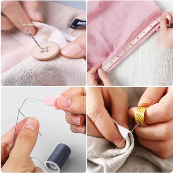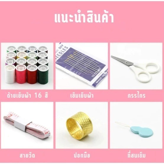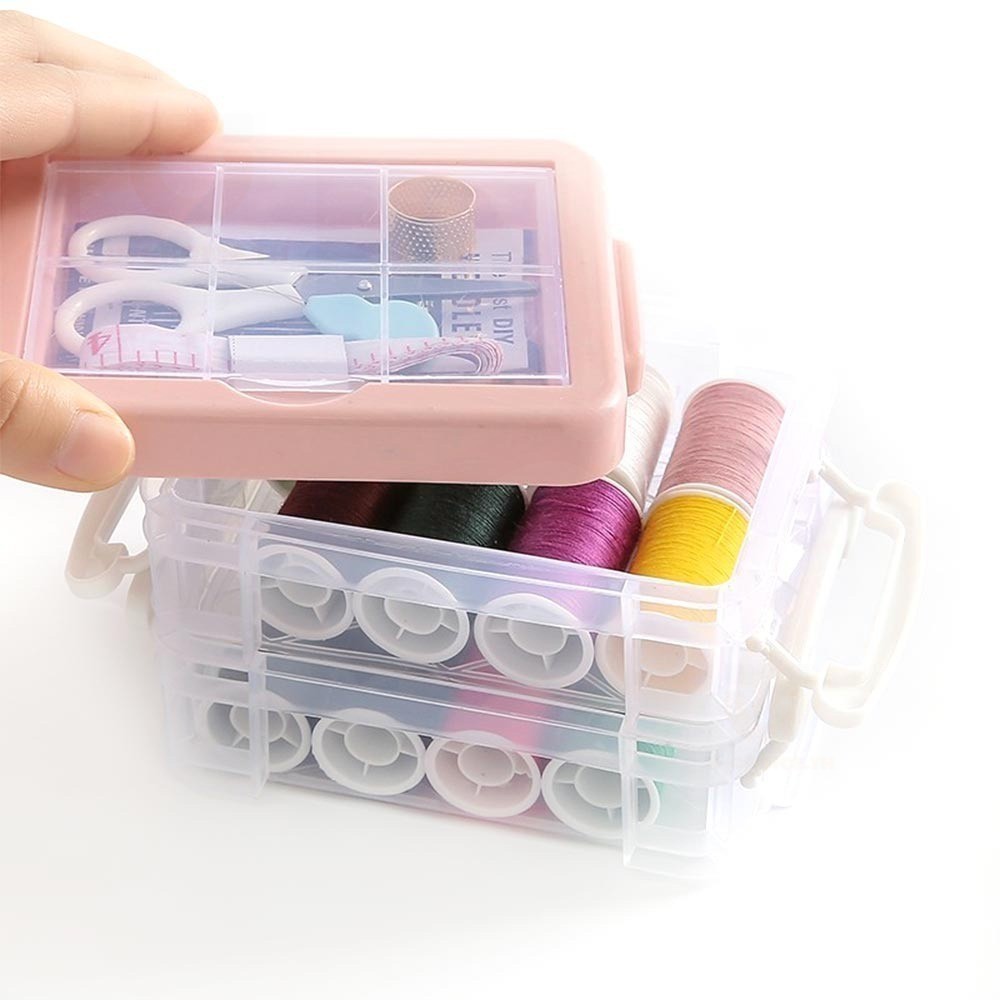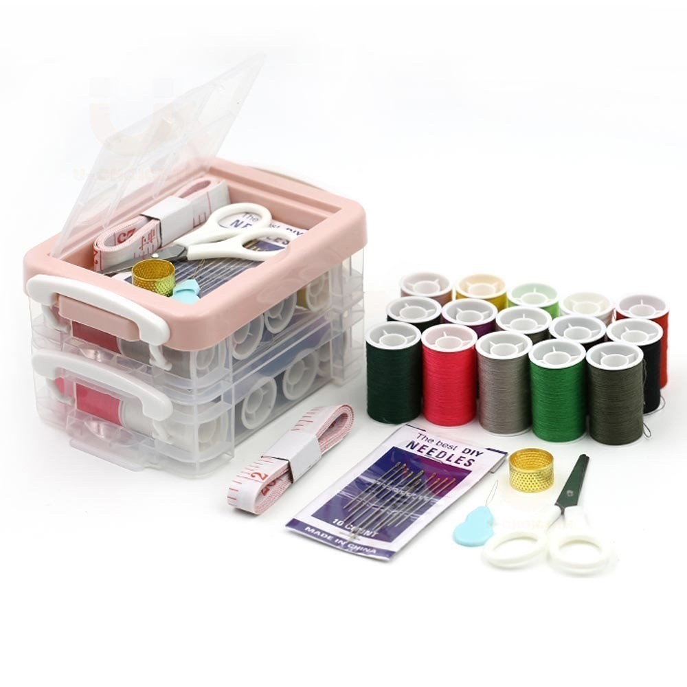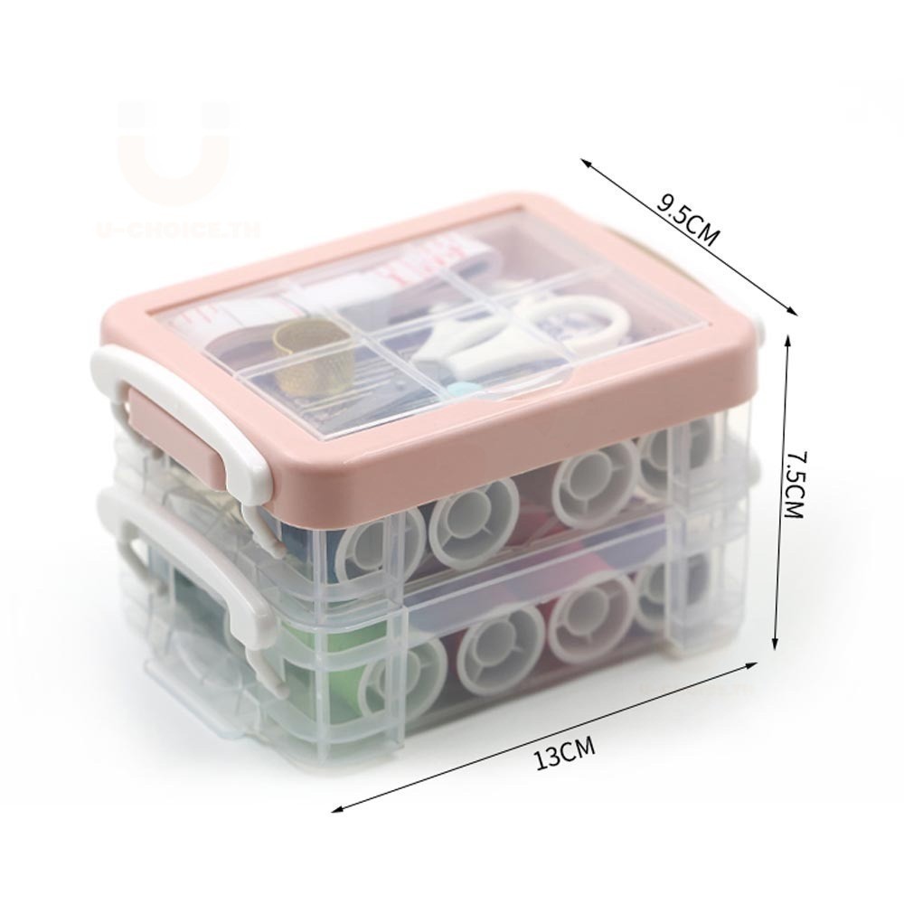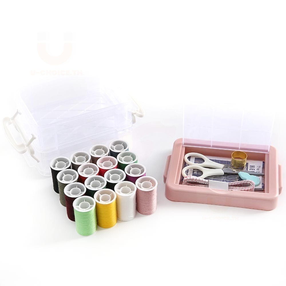 อุปกรณ์เย็บผ้า ชุดเย็บผ้าพกพาชุดกล่องเครื่องมือเย็บผ้า แบบสามชั้น ชุดเข็มด้าย สีชมพู จัดส่งจากกรุงเทพฯ