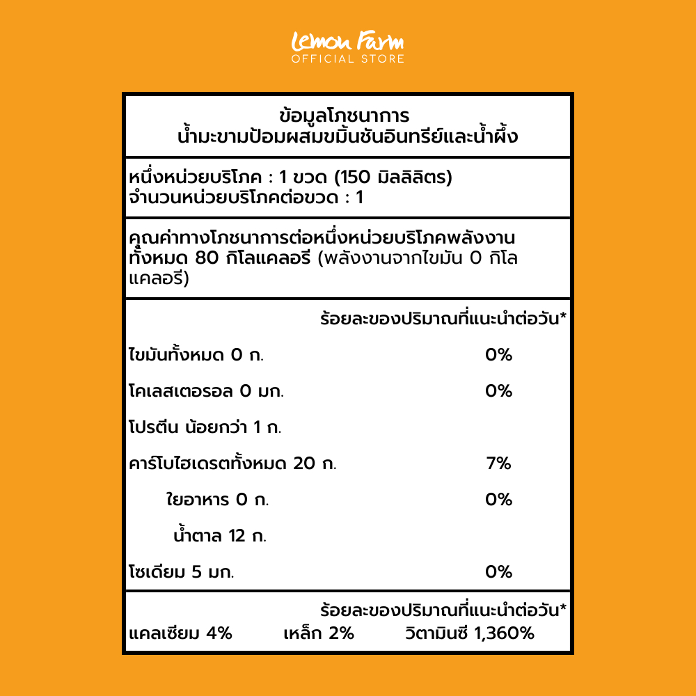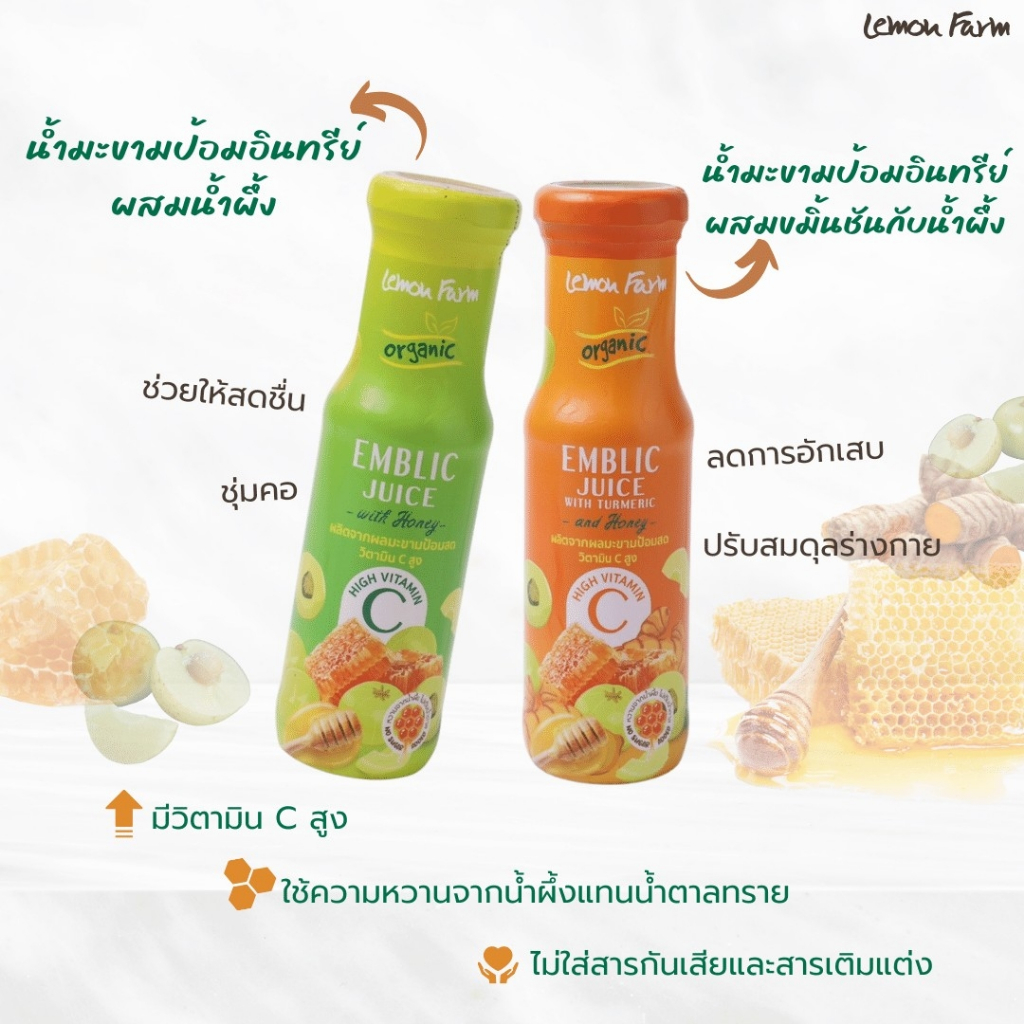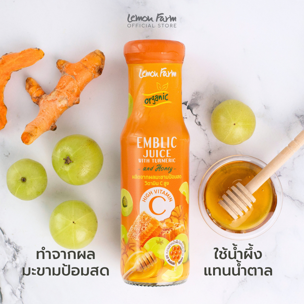 น้ำมะขามป้อมผสมขมิ้นชันอินทรีย์ผสมน้ำผึ้ง 150ml Lemon Farm