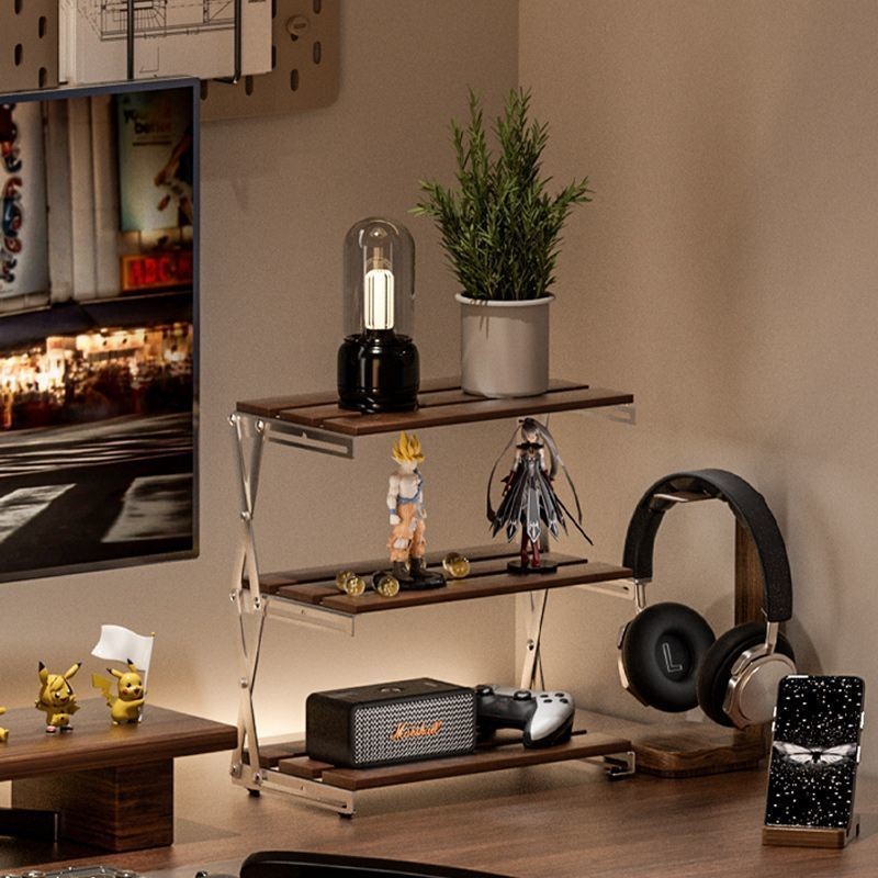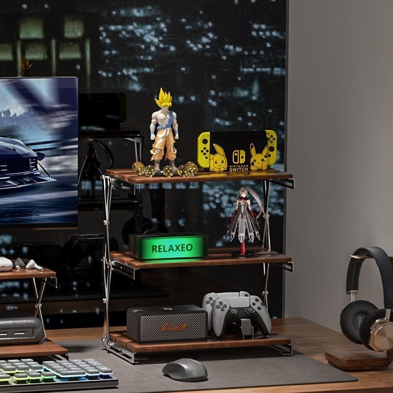 Bearwalker ชั้นวางของพับได้ไม้เนื้อแข็งเดสก์ท็อปสามชั้นแบบพกพาโต๊ะเล็ก Tidy-up Study Gaming Table พร้อมชั้นเก็บของ