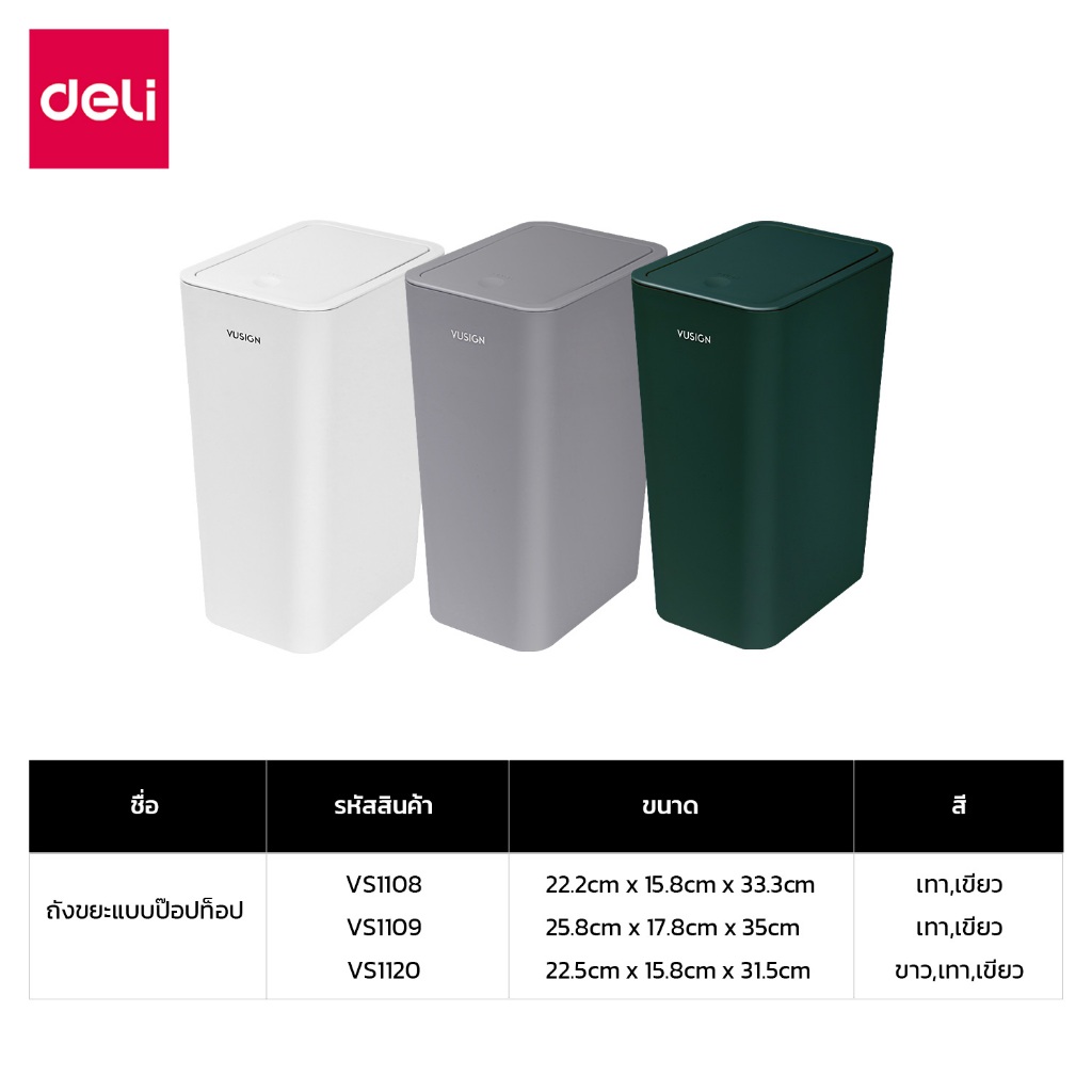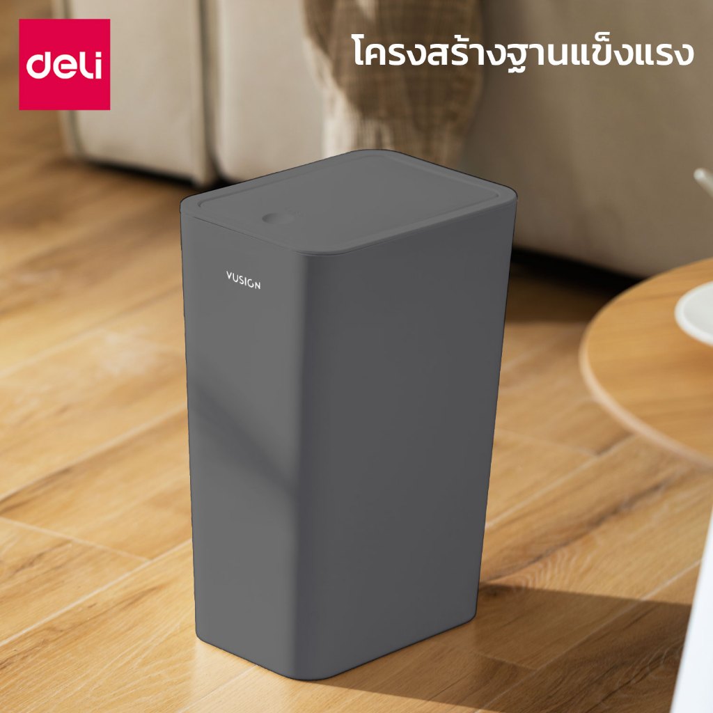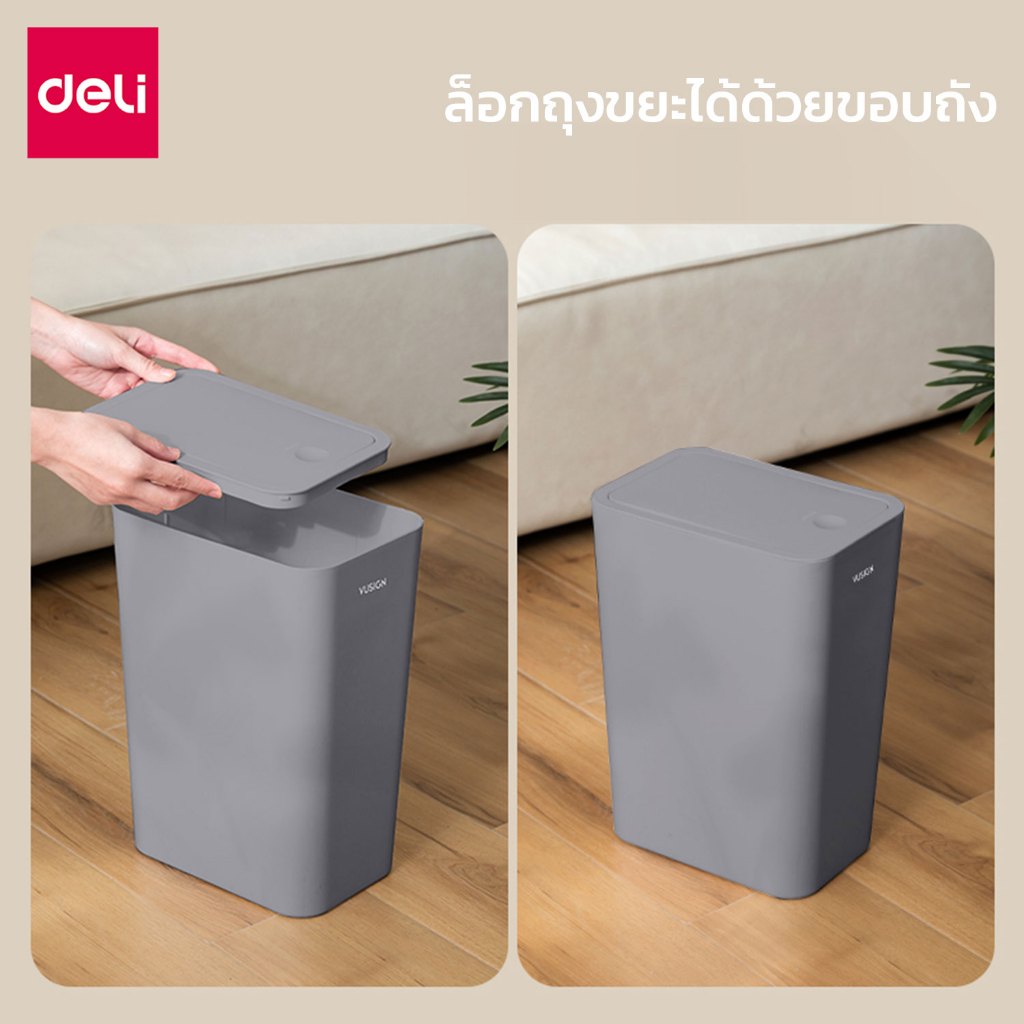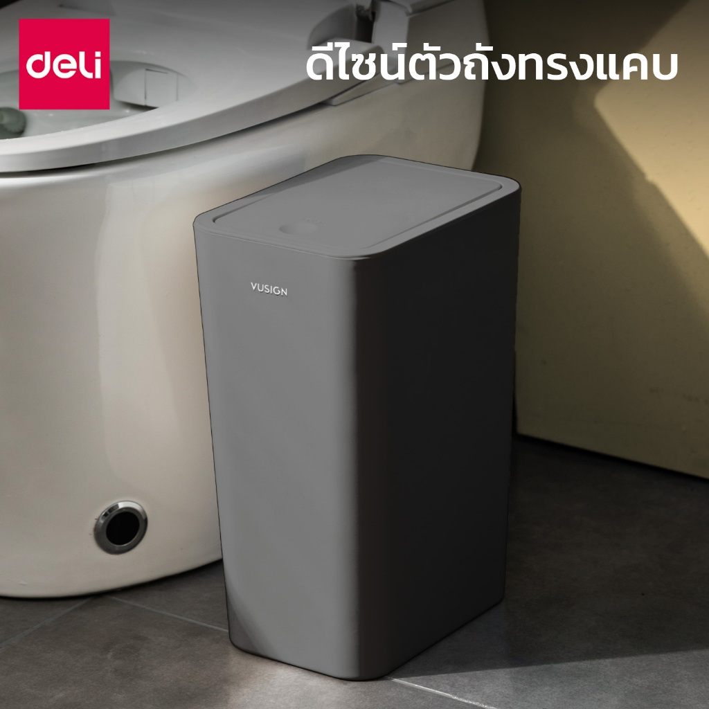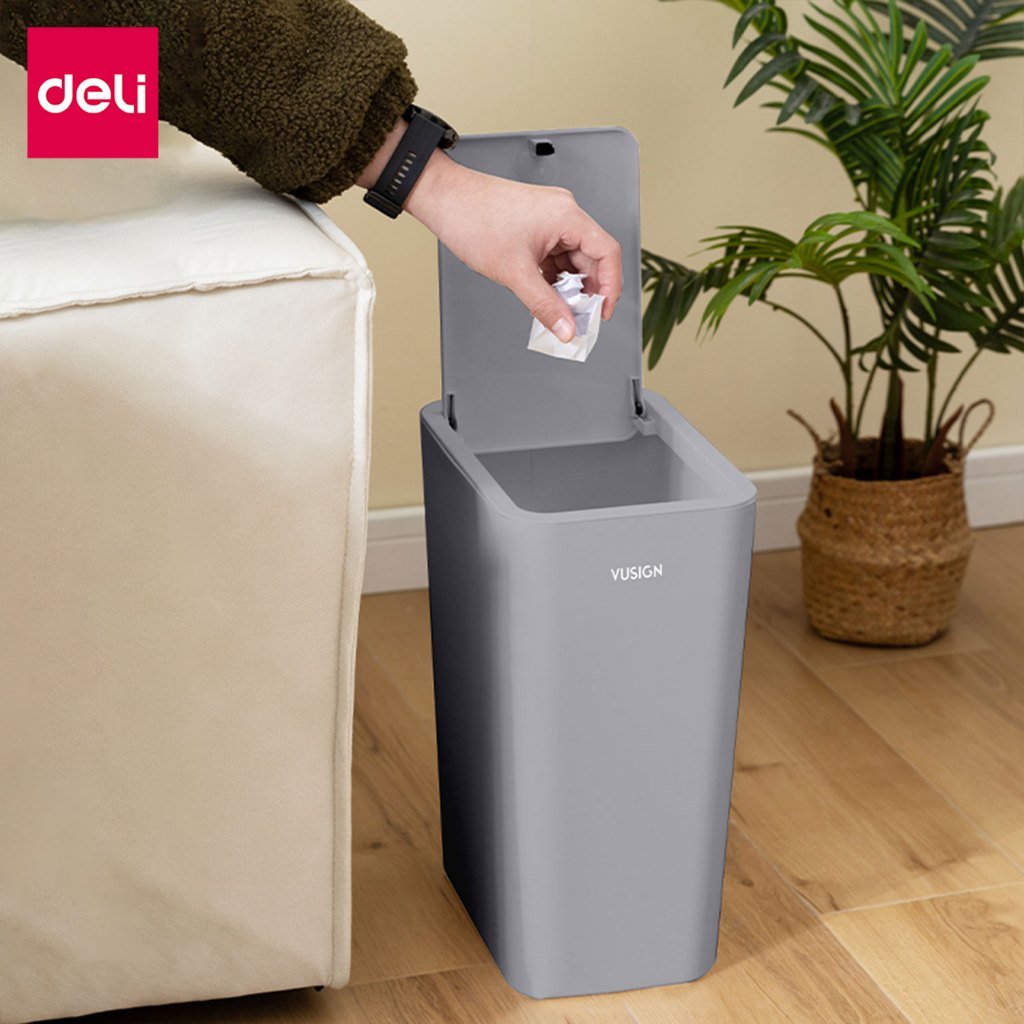 Deli ถังขยะ ถังขยะแบบฝากด ฝาปิดแบบป๊อปอัพ ป้องกันกลิ่น ประหยัดพื้นที่ จุได้เยอะ Trash Cans