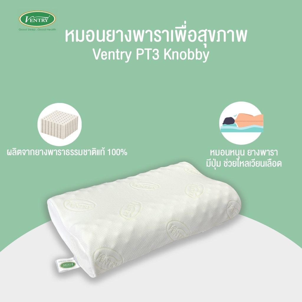 1 แถม 1 ✅สินค้าพร้อมส่ง Ventry PT3 Knobby หมอนรองรับต้นคอได้ดี หมอนเพื่อสุขภาพ ยางพาราธรรมชาติแท้100%