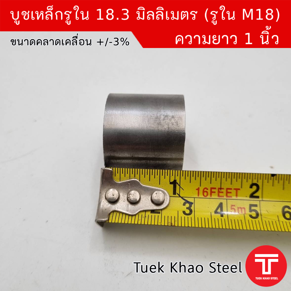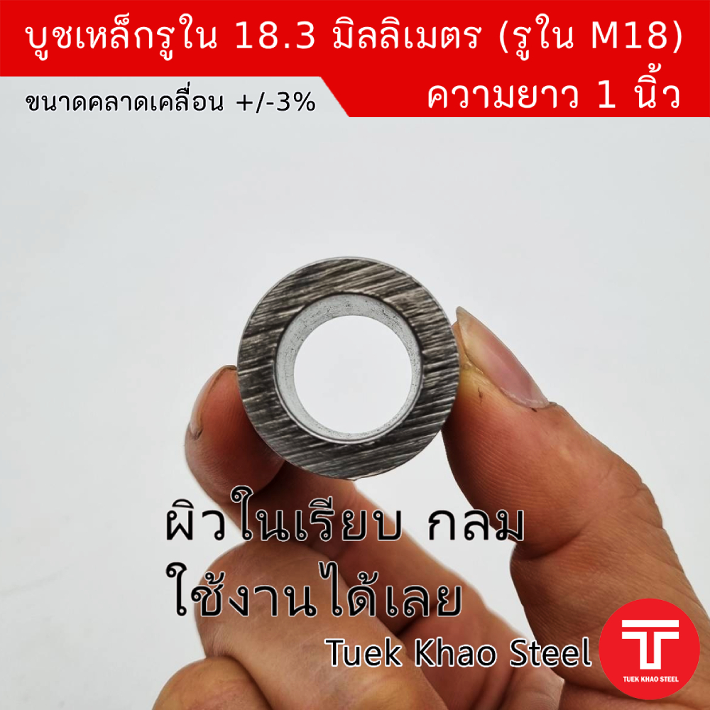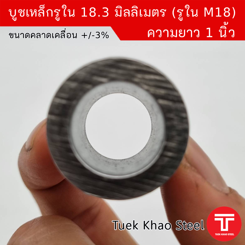 บูชเหล็กรูใน 18.3 มม. x ความยาว 1 นิ้ว ,ขอบหนา ,บูชใช้สวมเพลา 18 มิลลิเมตร ,บูชสวมกับน็อต M18 ,ผิวภายในเรียบกลม ,บูช DIY