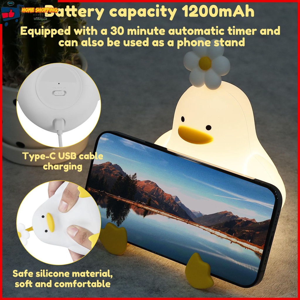 ดอกไม้เป็ดไฟกลางคืนสำหรับเด็กซิลิโคนหรี่แสงได้สถานรับเลี้ยงเด็กกลางคืน 1200mAh USB ชาร์จไฟ LED โคมไฟข้างเตียงสัมผัสสำหรับเด็ก