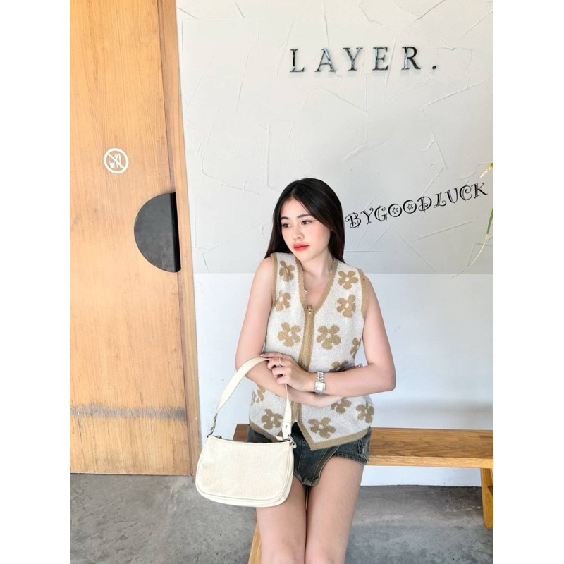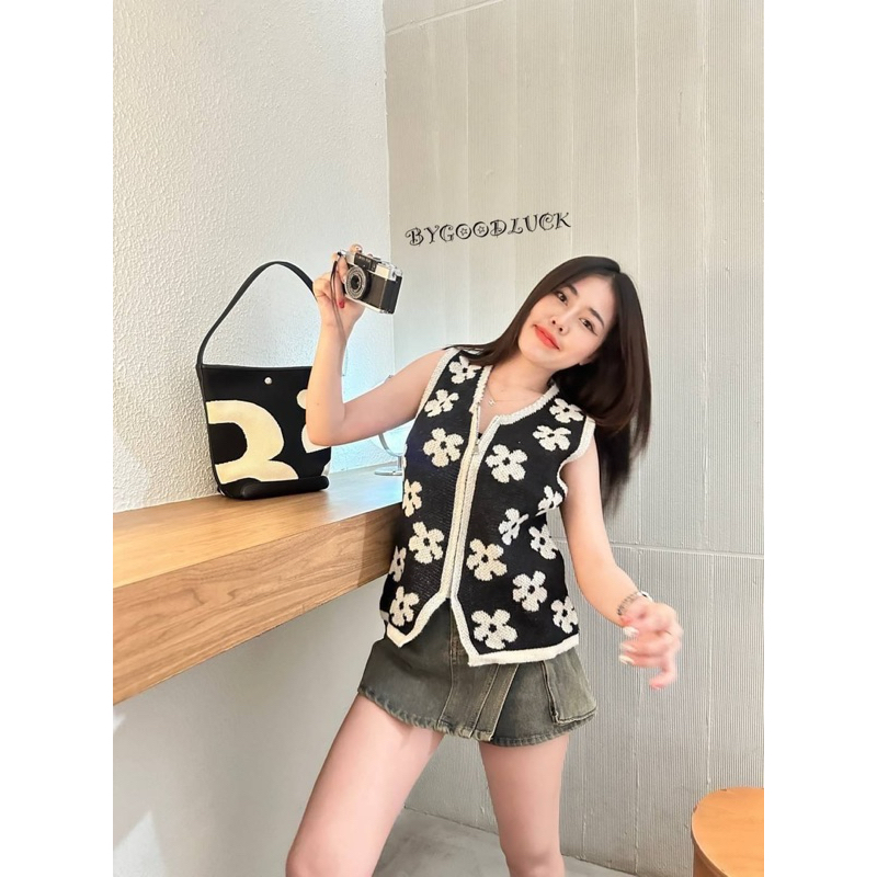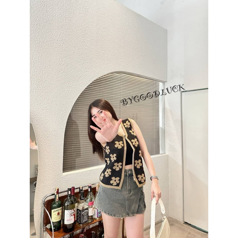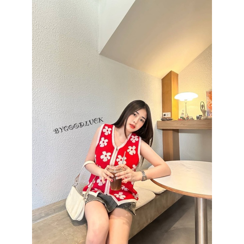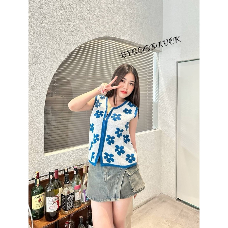 พร้อมส่ง* เสื้อกั๊กซิปไหมพรม (สาวอวบ 36-60 นิ้ว)ถักลายดอกไม้ คอวี งานสวย งานกระแส ขายดี