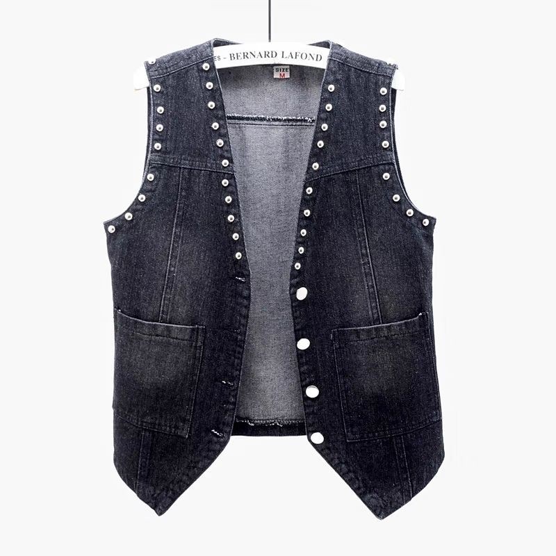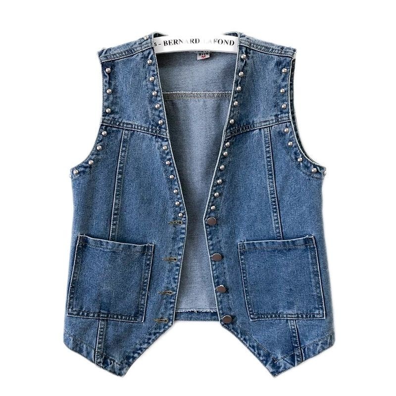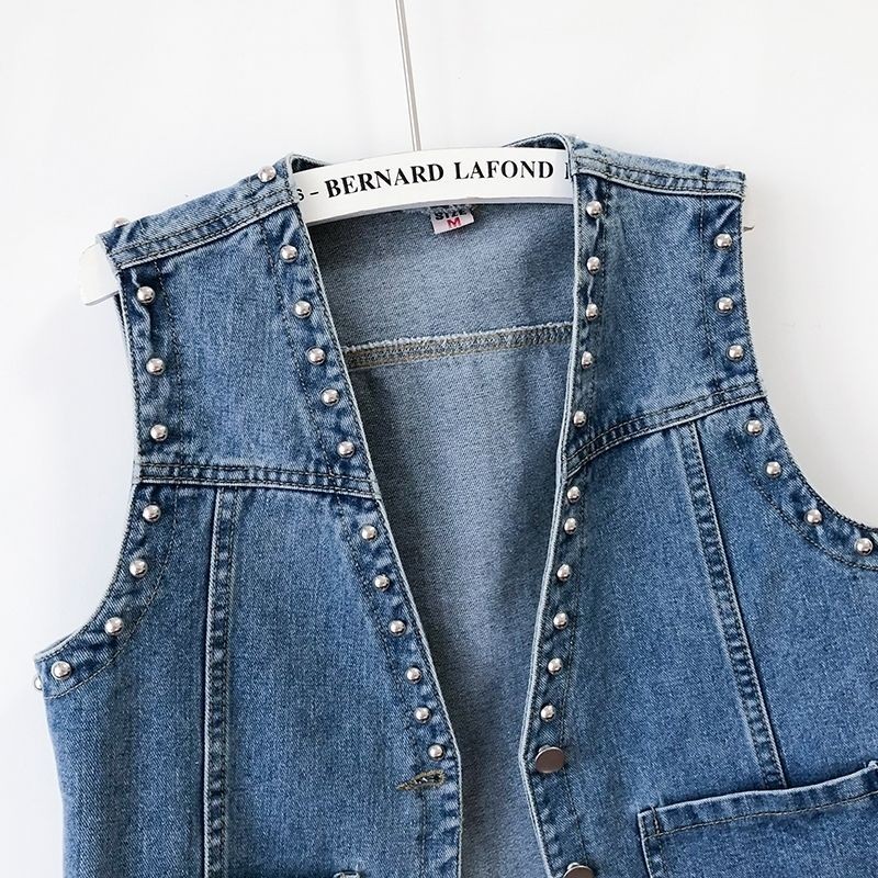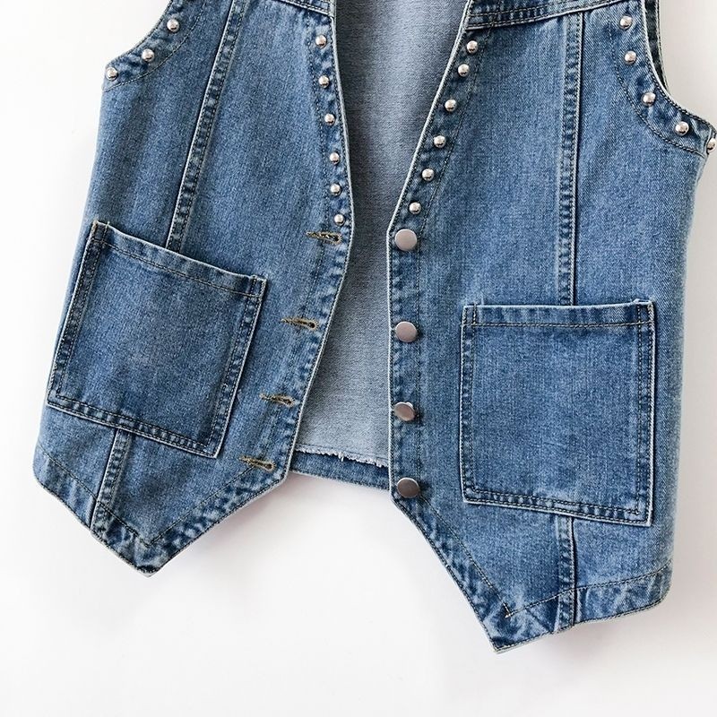 [พร้อมส่ง] เสื้อกั๊กยีน แขนกุด แบบบาง ประดับหมุด ขนาดเล็ก แฟชั่นฤดูใบไม้ผลิ และฤดูใบไม้ร่วง สําหรับผู้หญิง