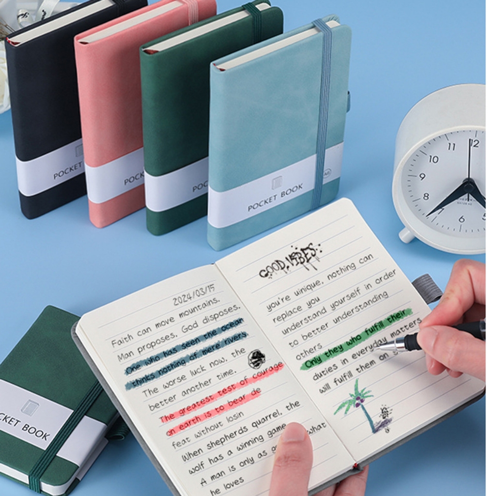 สมุดโน้ต มีสายรัด ปกหนัง ขนาด A6 บรรทัดมีเส้น 192 หน้า (ไม่แถมปากกา) สมุดจดบันทึก เขียนไดอารี่ พร้อมส่งในไทย