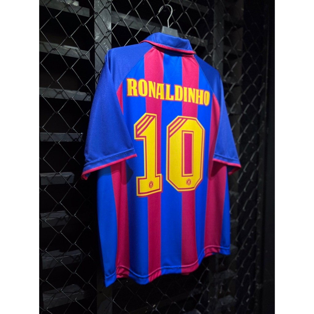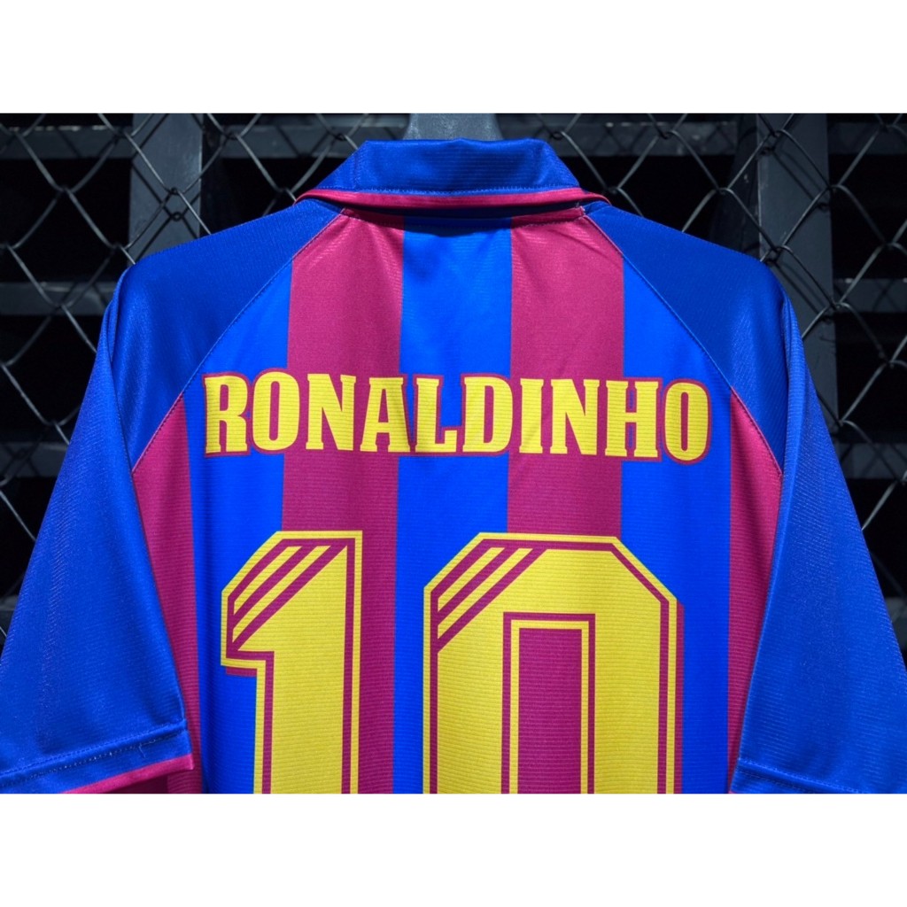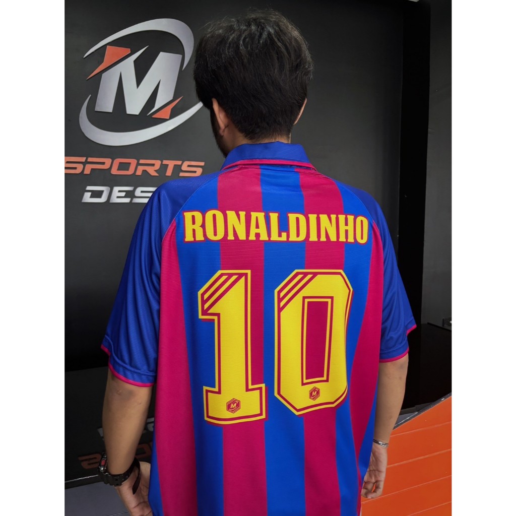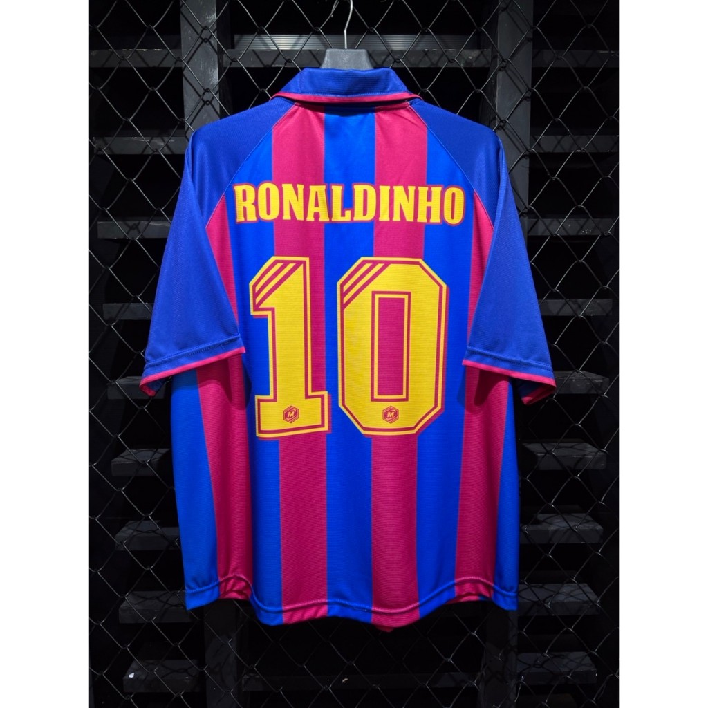 D04เสื้อกีฬา เสื้อบอล ไมใช่ Oversize เสื้อบอลวินเทจ Ronaldinho Barca ผ้าพิมพ์ลาย เบา สบาย ระบายอากาศ