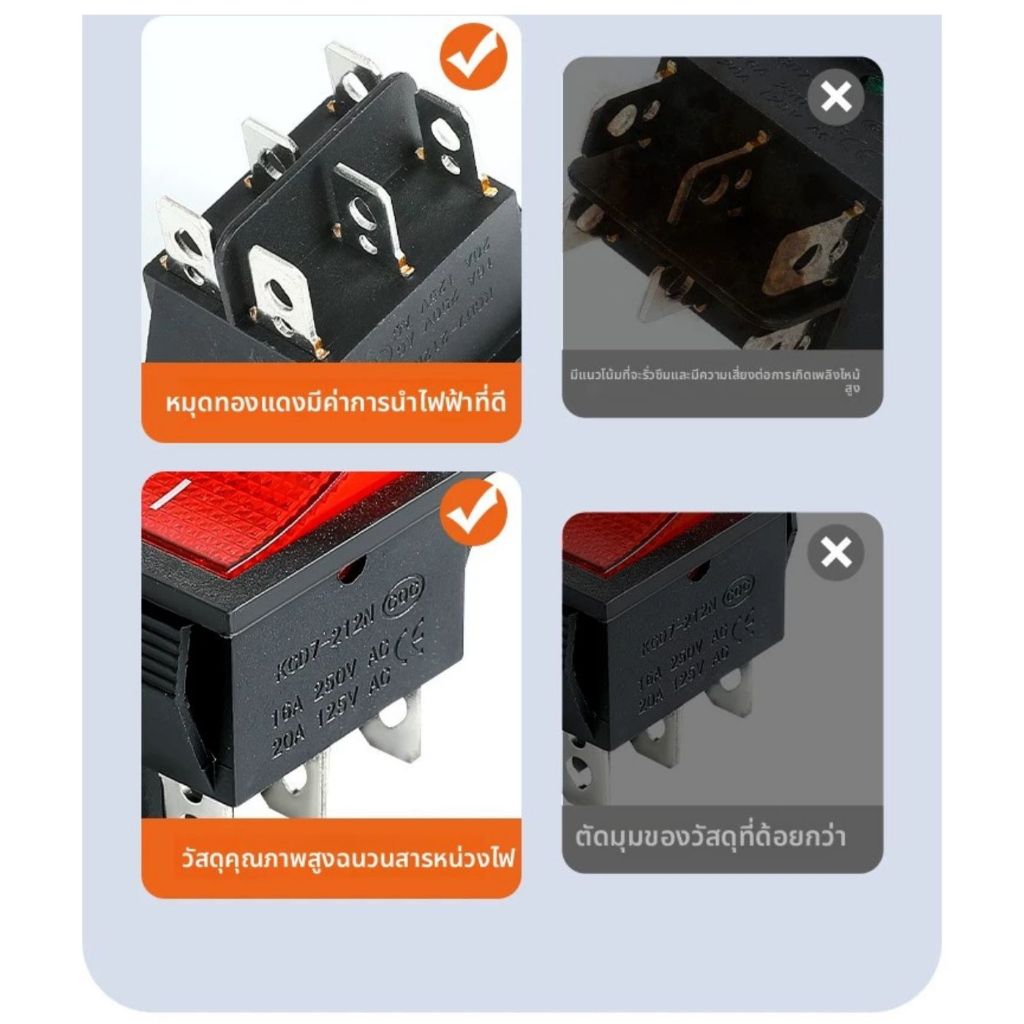 สวิตช์ สวิทช์ กระดก เปิด ปิด ไฟบ้าน 220VAC สีดำ 6 ขา 16A/250V 20A/125V (ON/OFF) SW