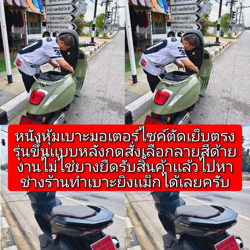 หนังหุ้มเบาะปาดPCX ปี 14-25เบาะปาดโครงเทียมทรงกลางเท่านั้นหนังเรดเดอร์ดำตัดเเฟชั่นไม่ไช่ยางยืด