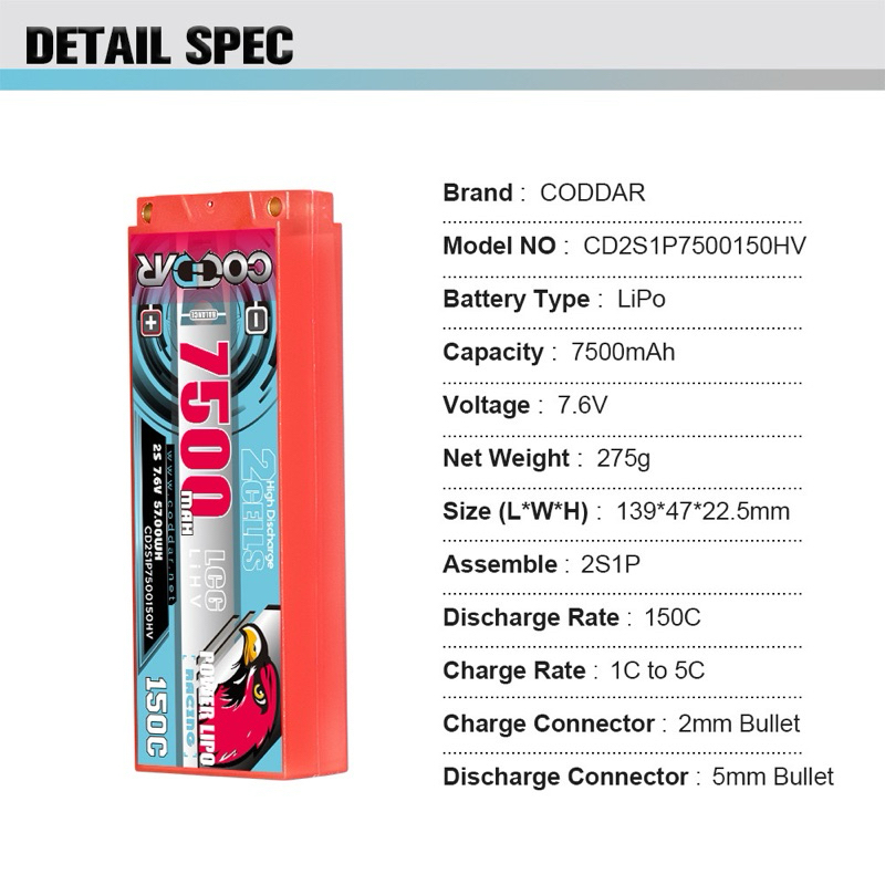 CODDAR Lipo 2s 7.6V 7500mAh 150c HV