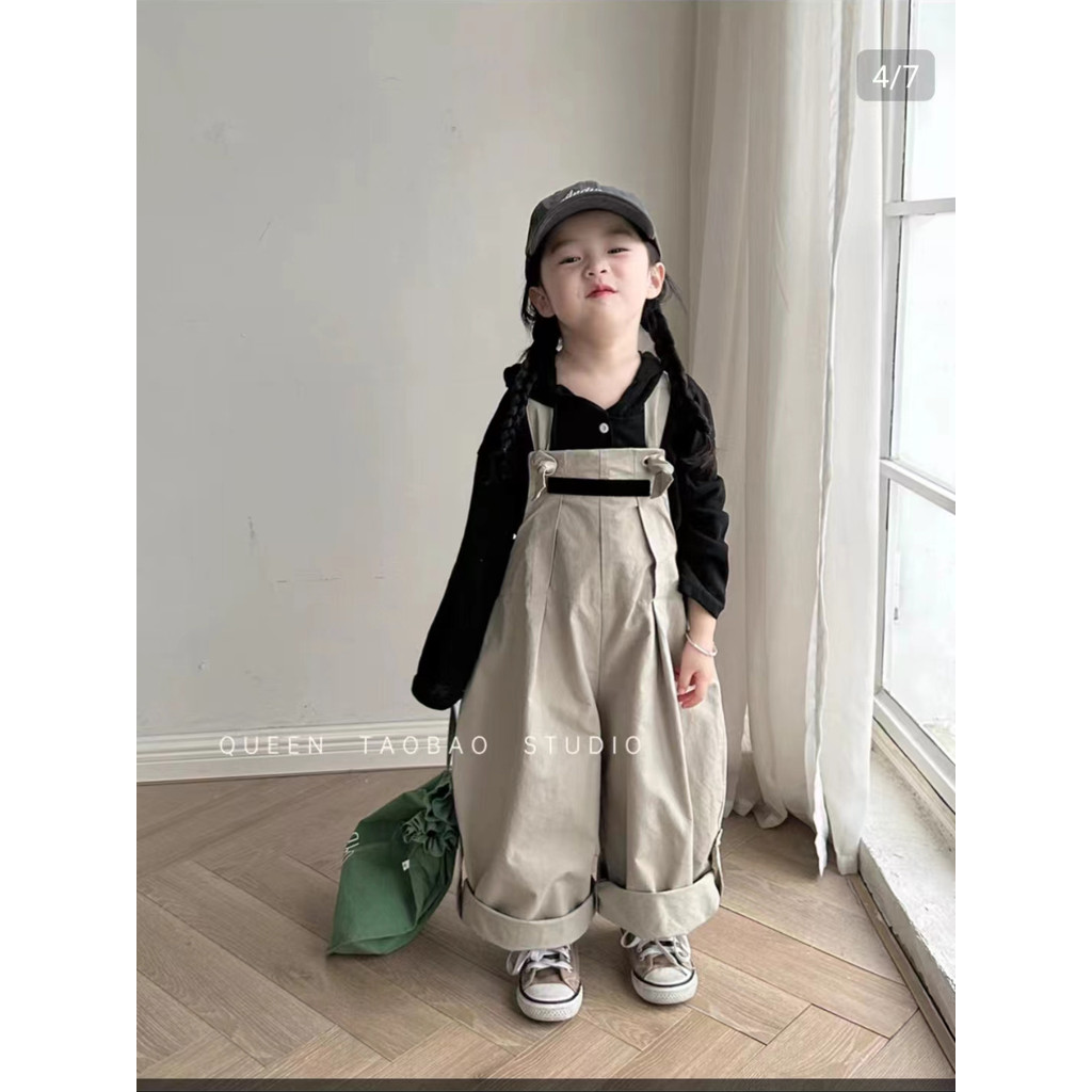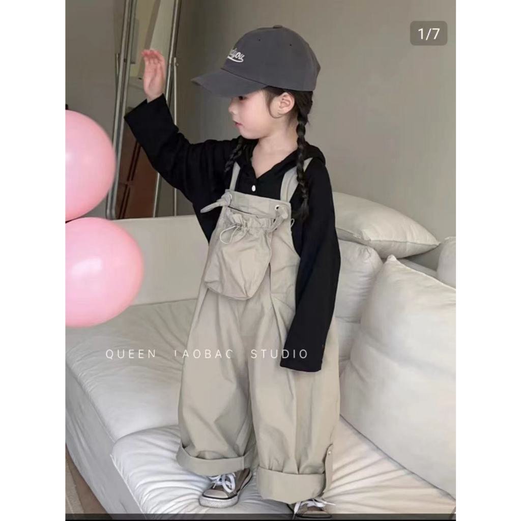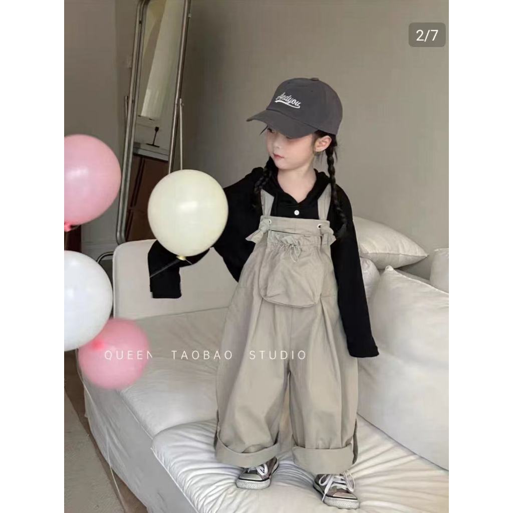 เด็กกางเกงฤดูใบไม้ร่วงสไตล์ใหม่สาวสีทึบกระเป๋าสามมิติ ชุดเอี๊ยม เด็กทารกแฟชั่น ชุดจั๊มสูท