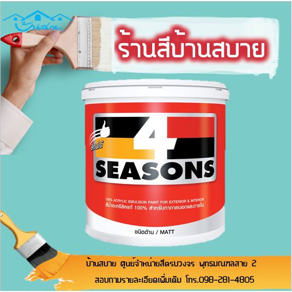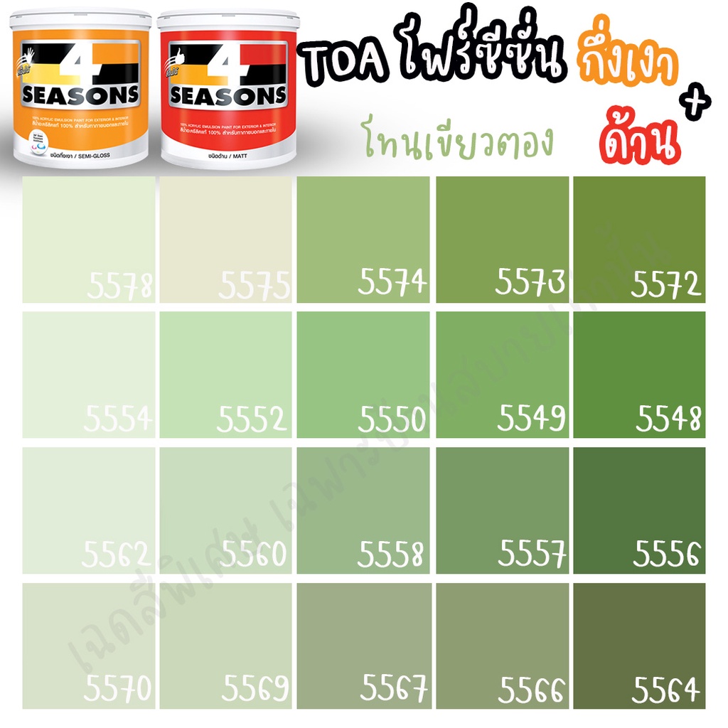 TOA 4 Seasons สีเขียวตอง สีภายนอก+ภายใน 3L สีทาบ้าน สีน้ำ สีอะครีลิค สีทาภายนอกและภายใน เนื้อสีแน่น กันร้อนเยี่ยม