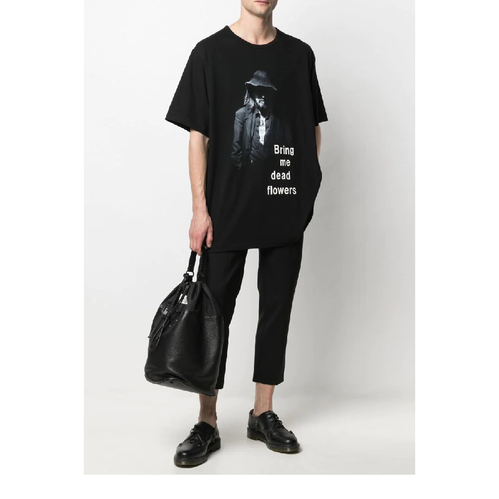 โยจิ YAMAMOTO®️Yohji Yamamoto เสื้อยืดพิมพ์ลายสีดําผ้าฝ้ายแท้ TEE Dark