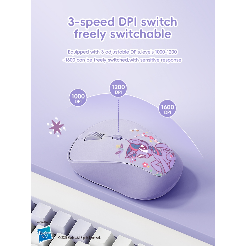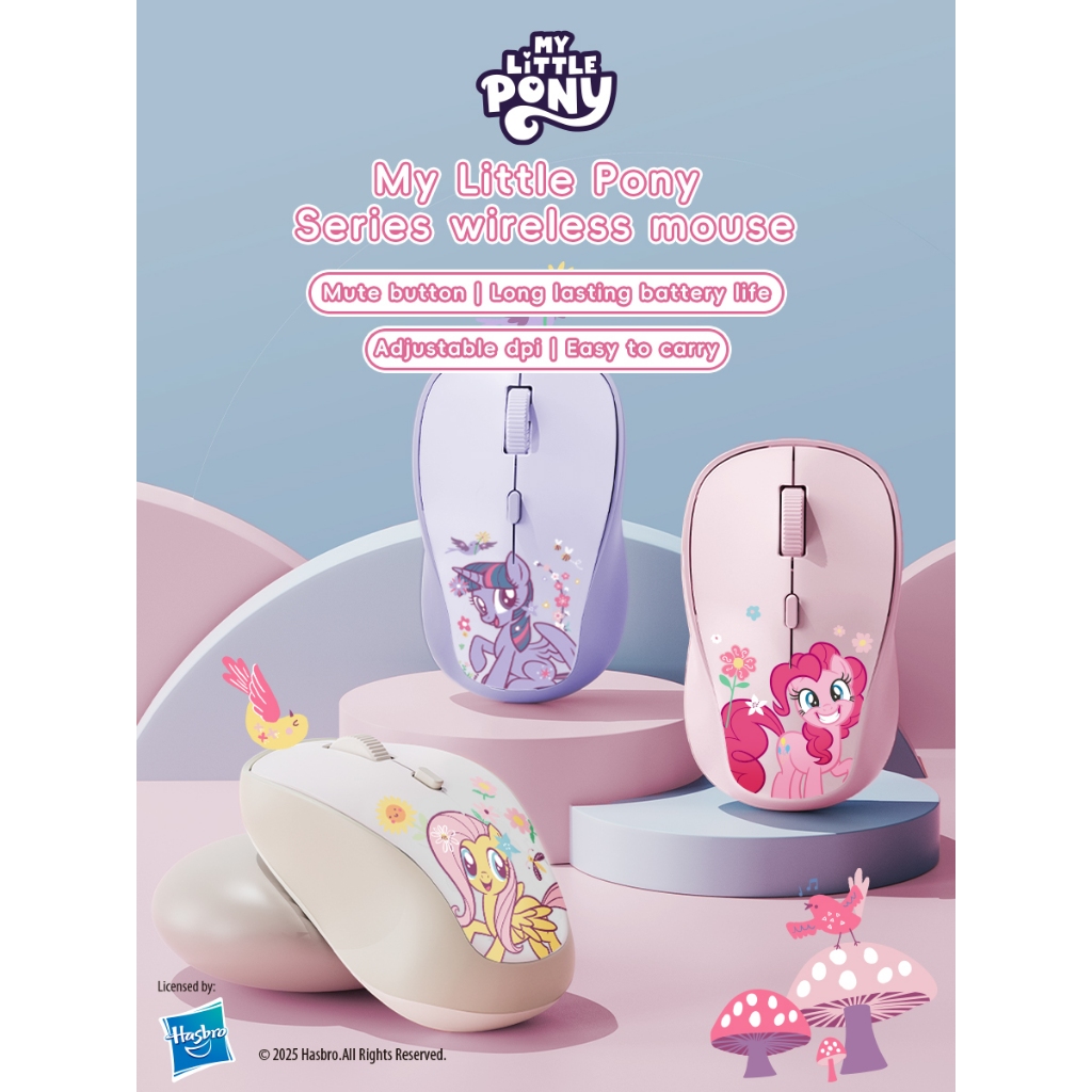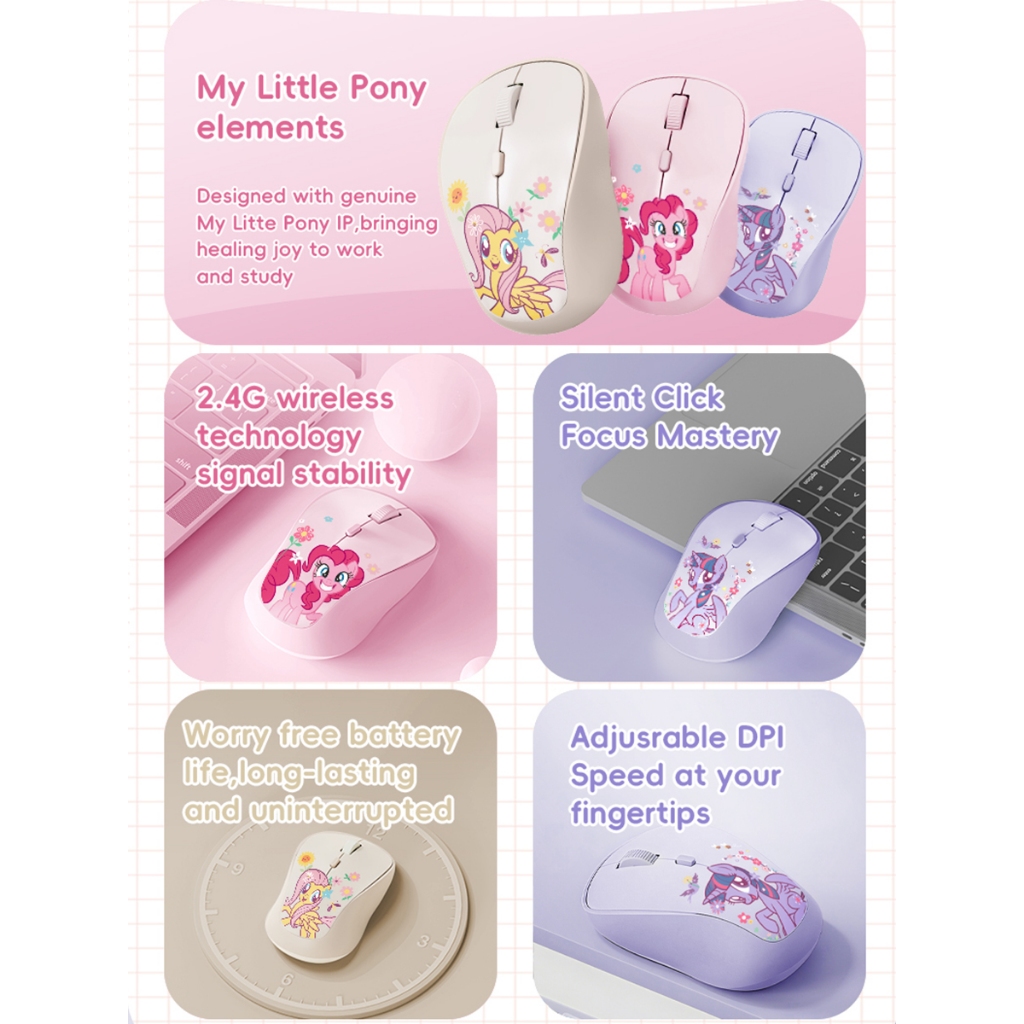My Little Pony M02 เมาส์ไร้สาย 2.4G ชาร์จได้ 1600DPI พร้อมตัวรับสัญญาณ USB นาโนสำหรับพีซีและแล็ปท็อป