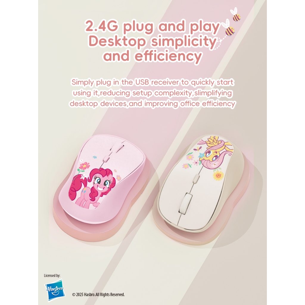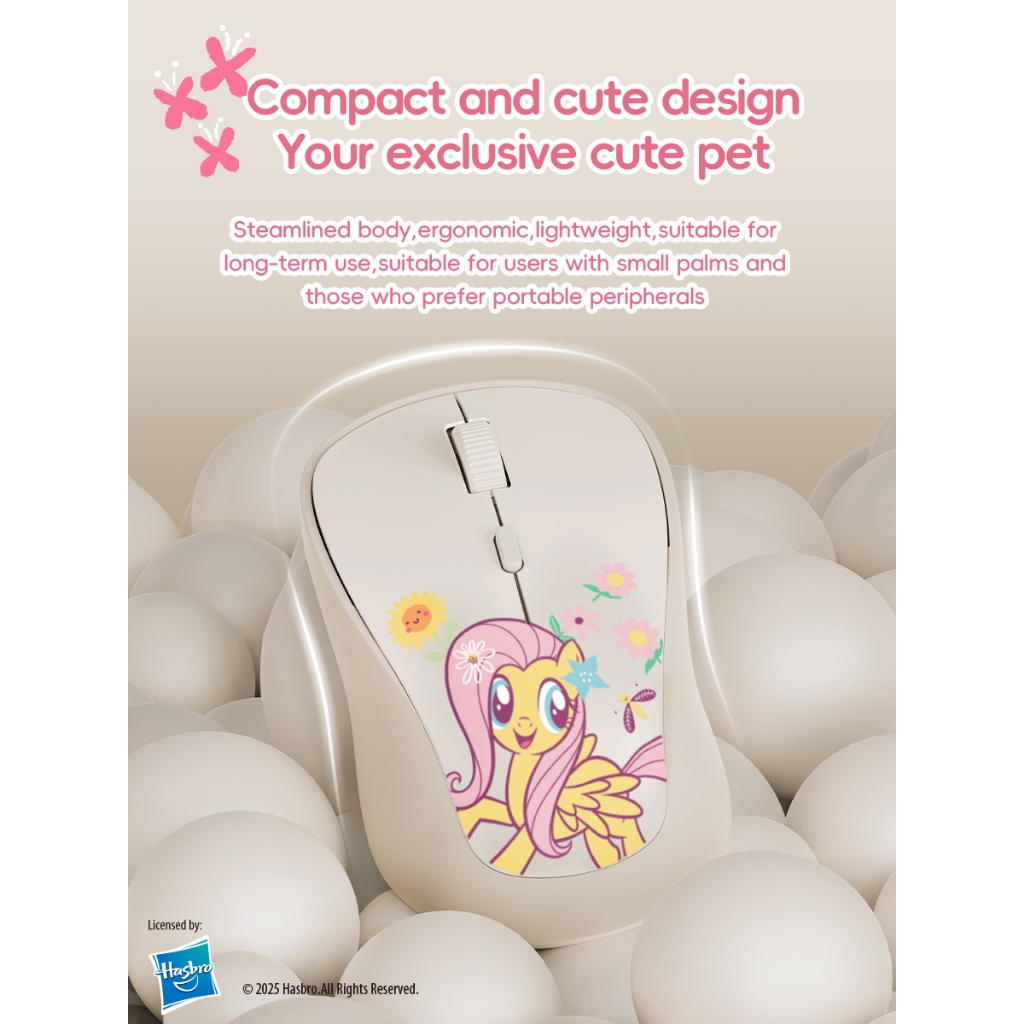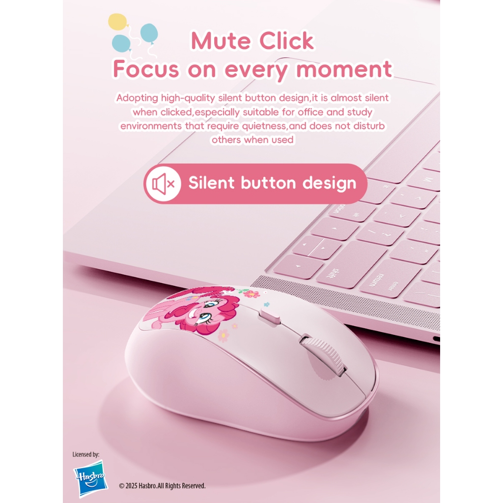 My Little Pony M02 เมาส์ไร้สาย 2.4G ชาร์จได้ 1600DPI พร้อมตัวรับสัญญาณ USB นาโนสำหรับพีซีและแล็ปท็อป