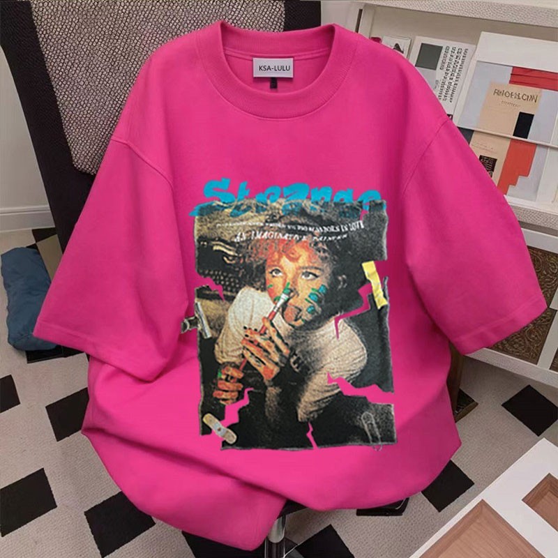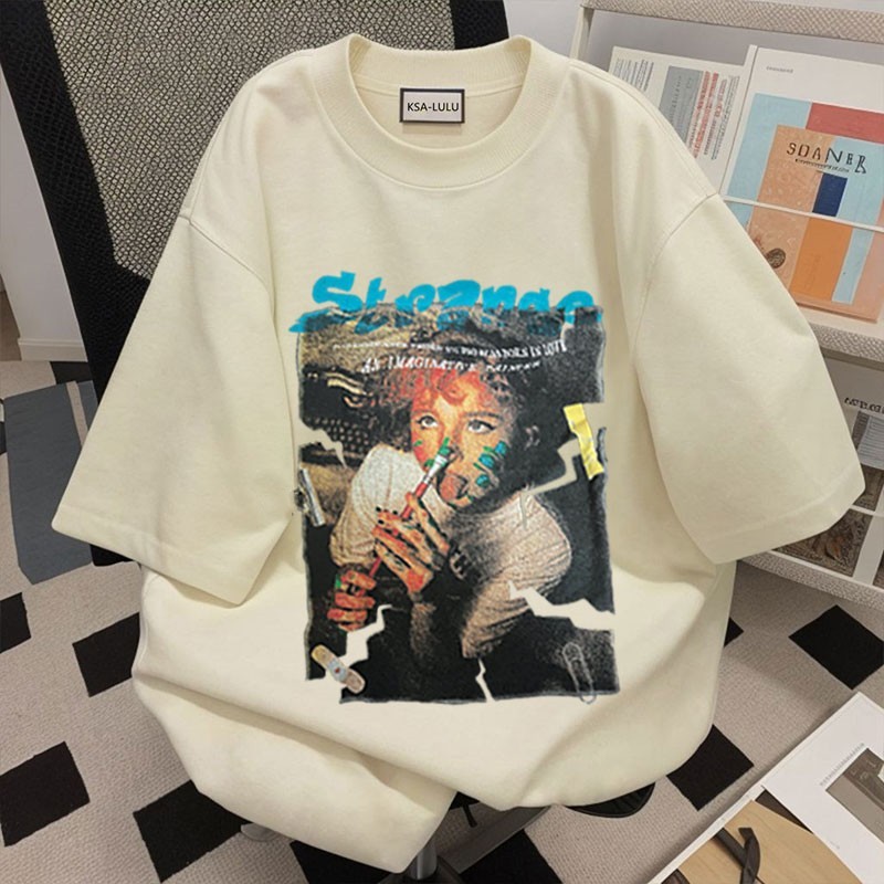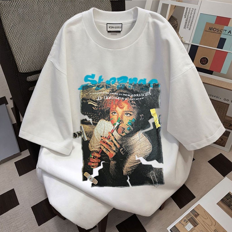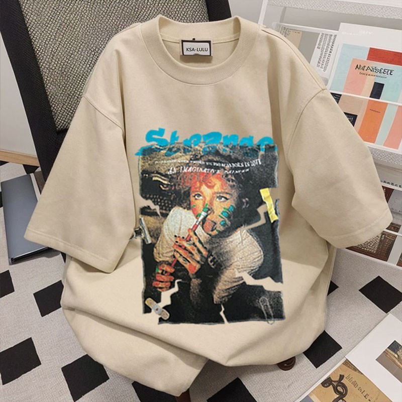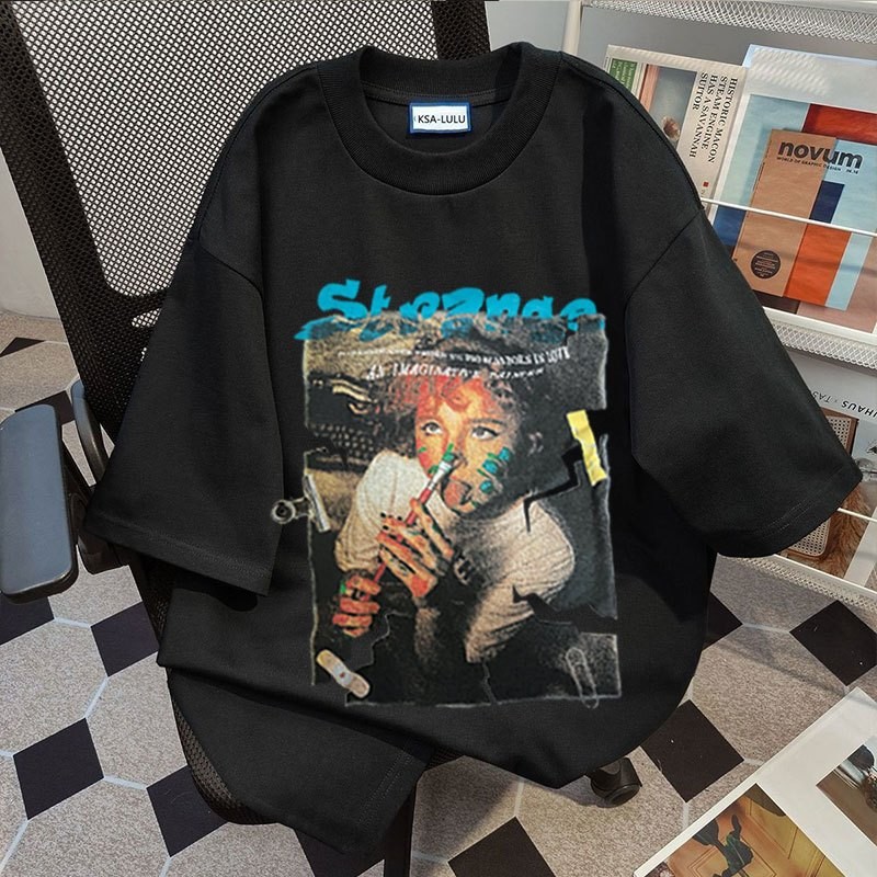 เสื้อยืดฟอกผู้ชายไซส์ใหญ่ Oversize สไตล์เกาหลี เสื้อคู่รักโอเวอร์ไซส์สกรีนลายวินเทจเท่ ฮิปฮอป ใส่ได้ทั้งชายและหญิง M-3XL